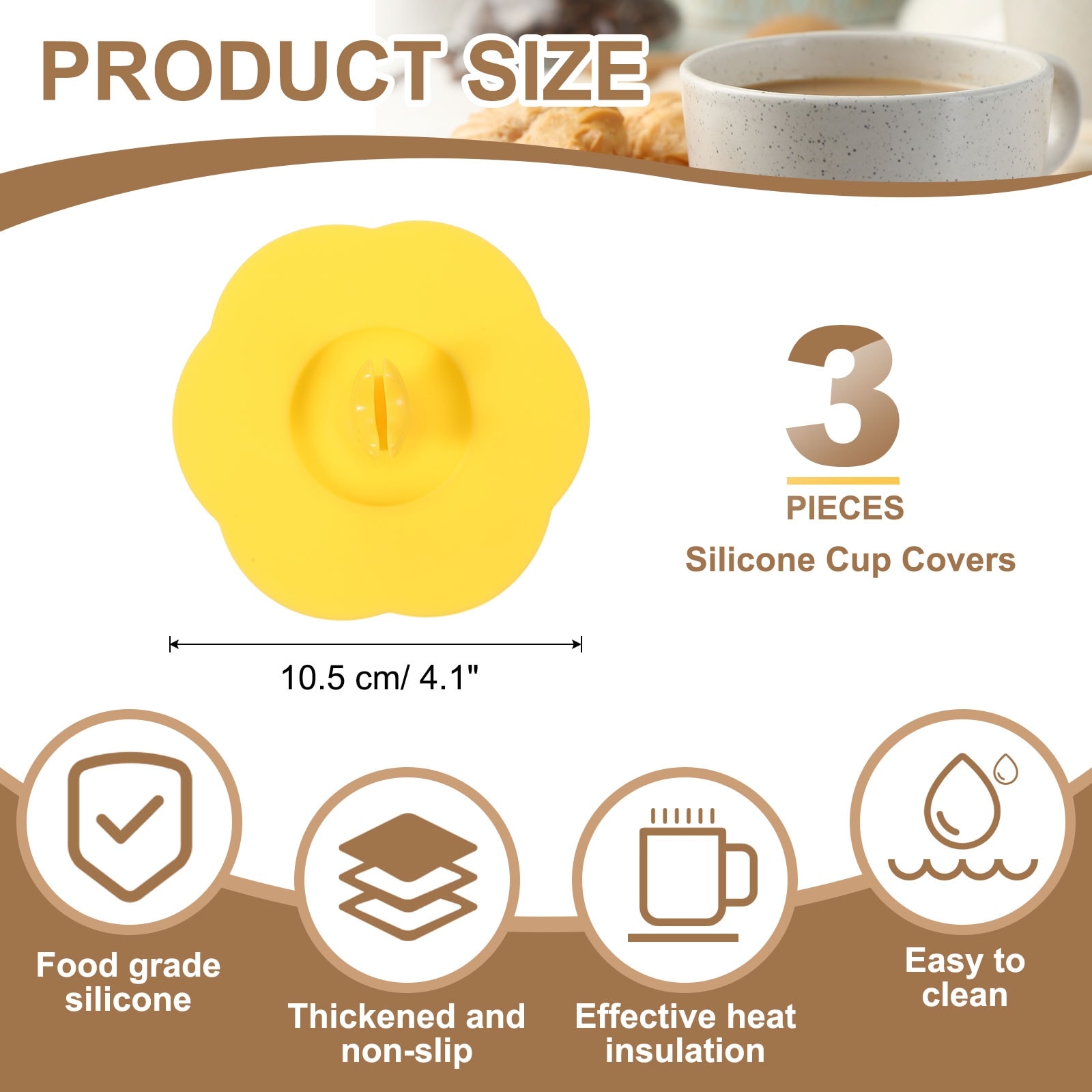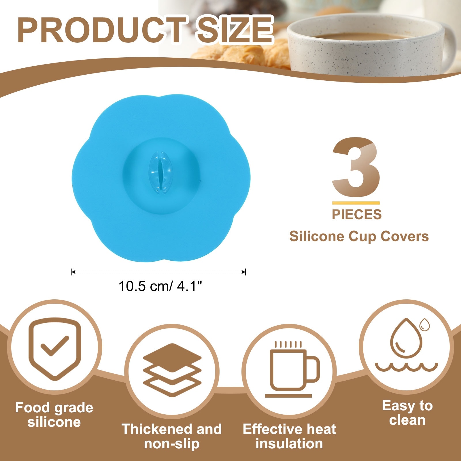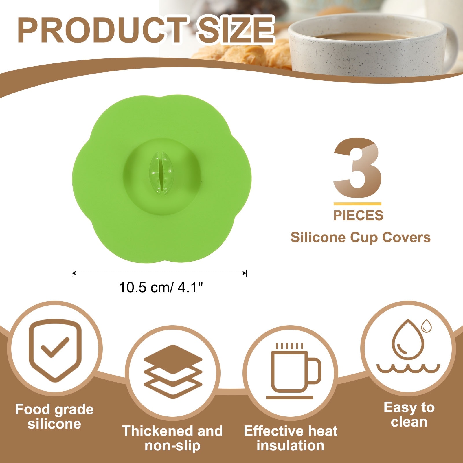 Silicone Cup Covers, Heart Universal Cup Lids Reusable Drinking Hot and Cold Beverages for Mugs Tea Cups Coffee Cup - 3Pcs, 4.1"