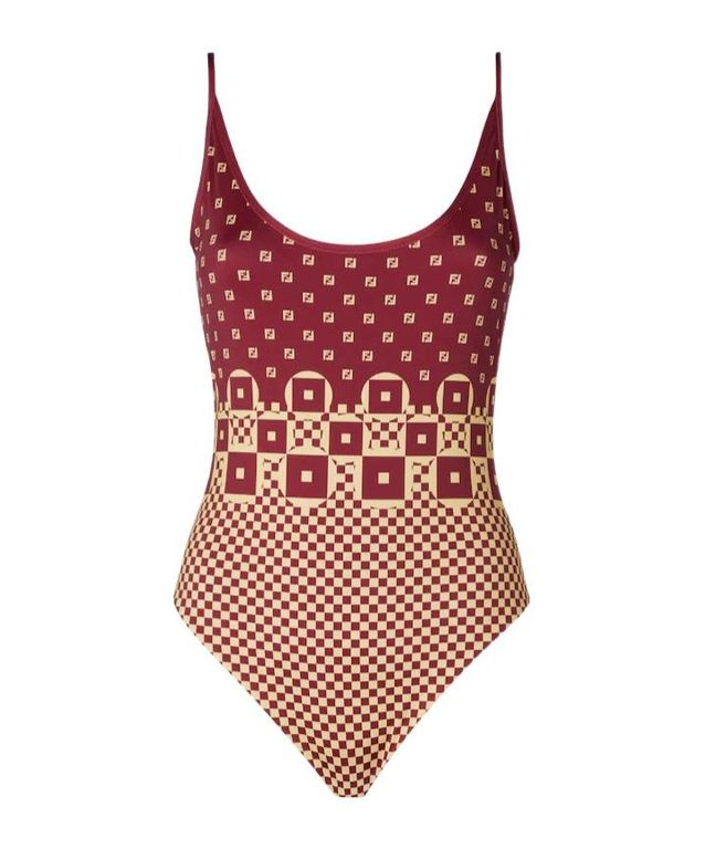Micro Patchwork Print Lycra One Piece Swimsuit - Red - Fendi Beachwear