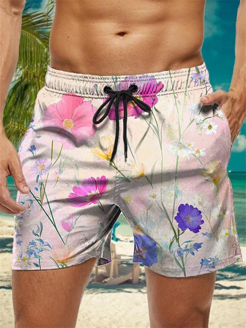 Trendy Floral Graphic Short Pants For Men, 3D Printed Hawaiian Beach Shorts Summer Fashion Vacation Oversized Swim Trunk shorts zfa58964 4xl