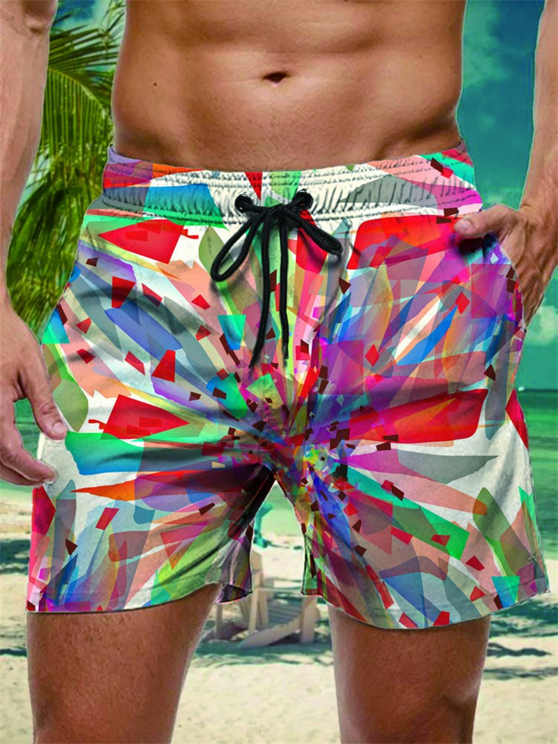 Mens Fashion Swim Trunks With Pad Summer Beach Surfing Swimwear Comfortable Boxer Shorts For Swimming gray Geometry m