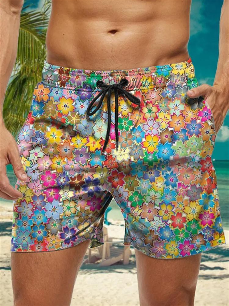 Trendy Floral Graphic Short Pants For Men, 3D Printed Hawaiian Beach Shorts Summer Fashion Vacation Oversized Swim Trunk shorts zfa58955 4xl