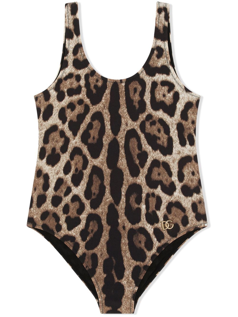 Dolce & Gabbana Kids leopard-print scoop-neck swimsuit - Brown