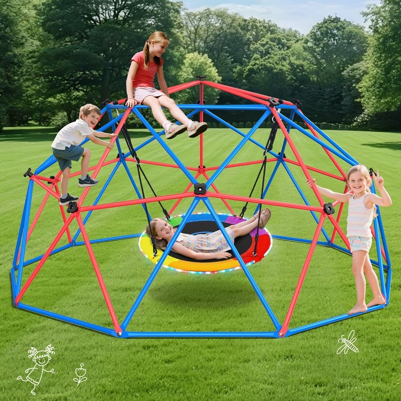 Hapfan 800lbs Climbing Dome Swing Set with LED Saucer Swing, Jungle Gym for Kids Outdoor Backyard, Easy Asssembly