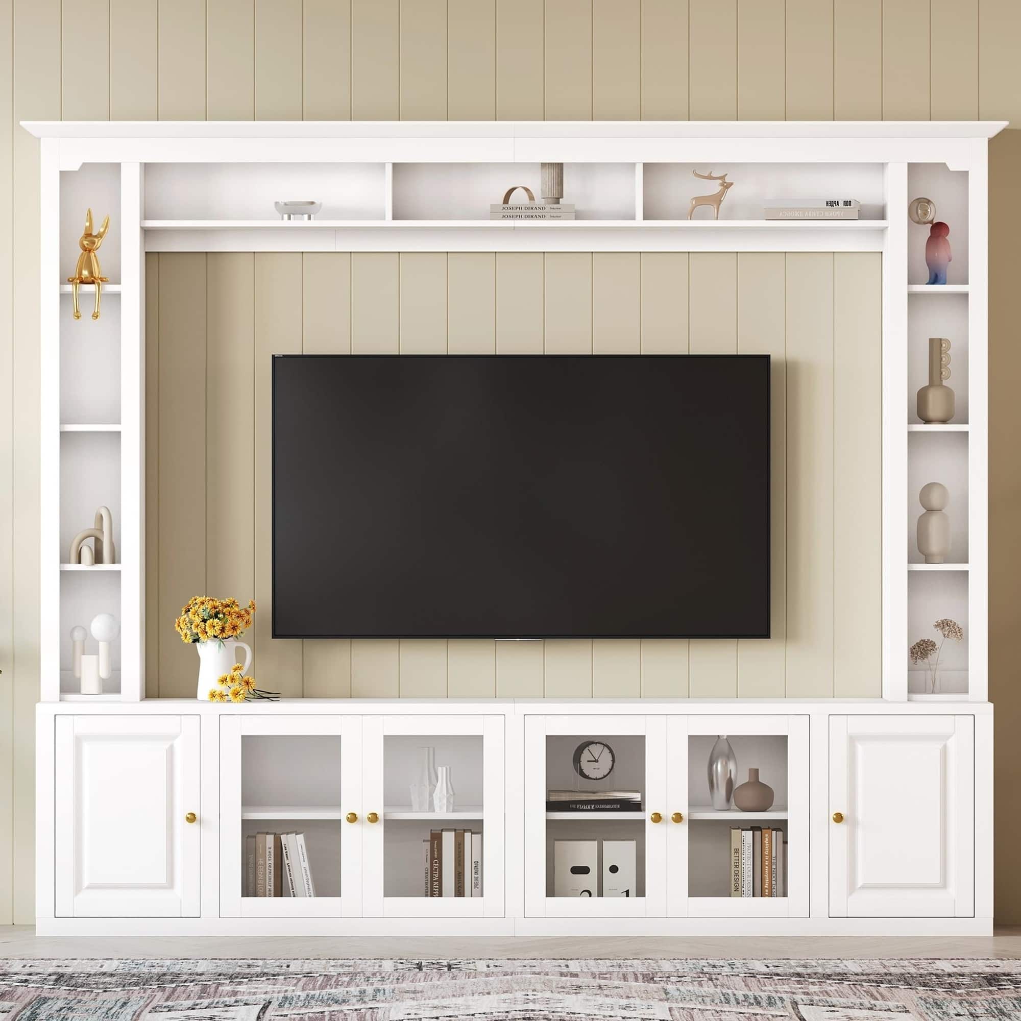 92 inch Media Console TV Stand for TVs up to 80", Modern Entertainment Wall Unit with Bookshelves & Tempered Glass Doors