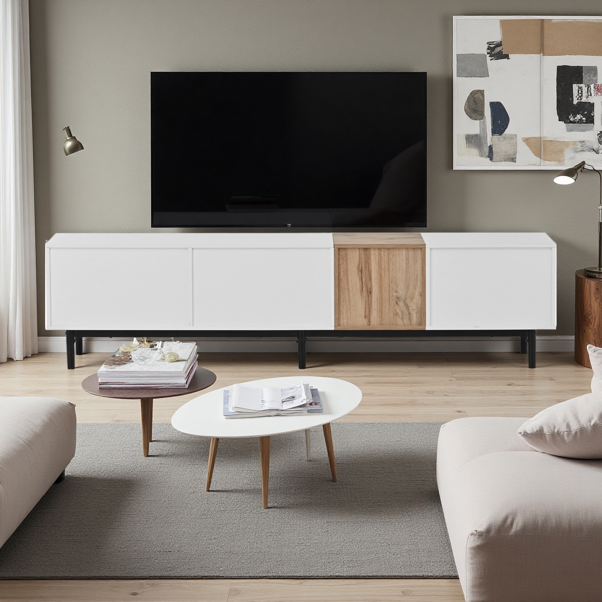 Modern TV Stand for 80'' TV with 3 Doors