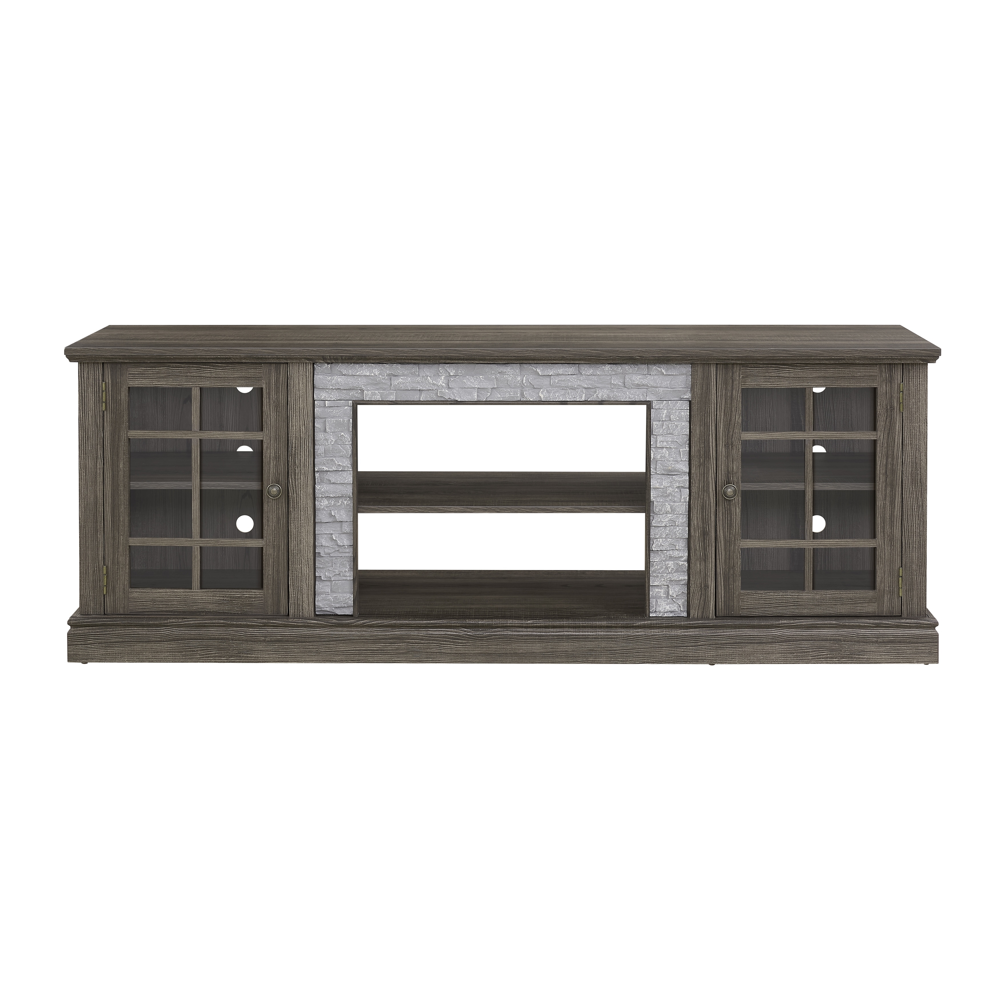 Large Storage TV Stand for TVs up to 75'' with Faux Stacked Stone, Adjustable Shelves and Cable Management