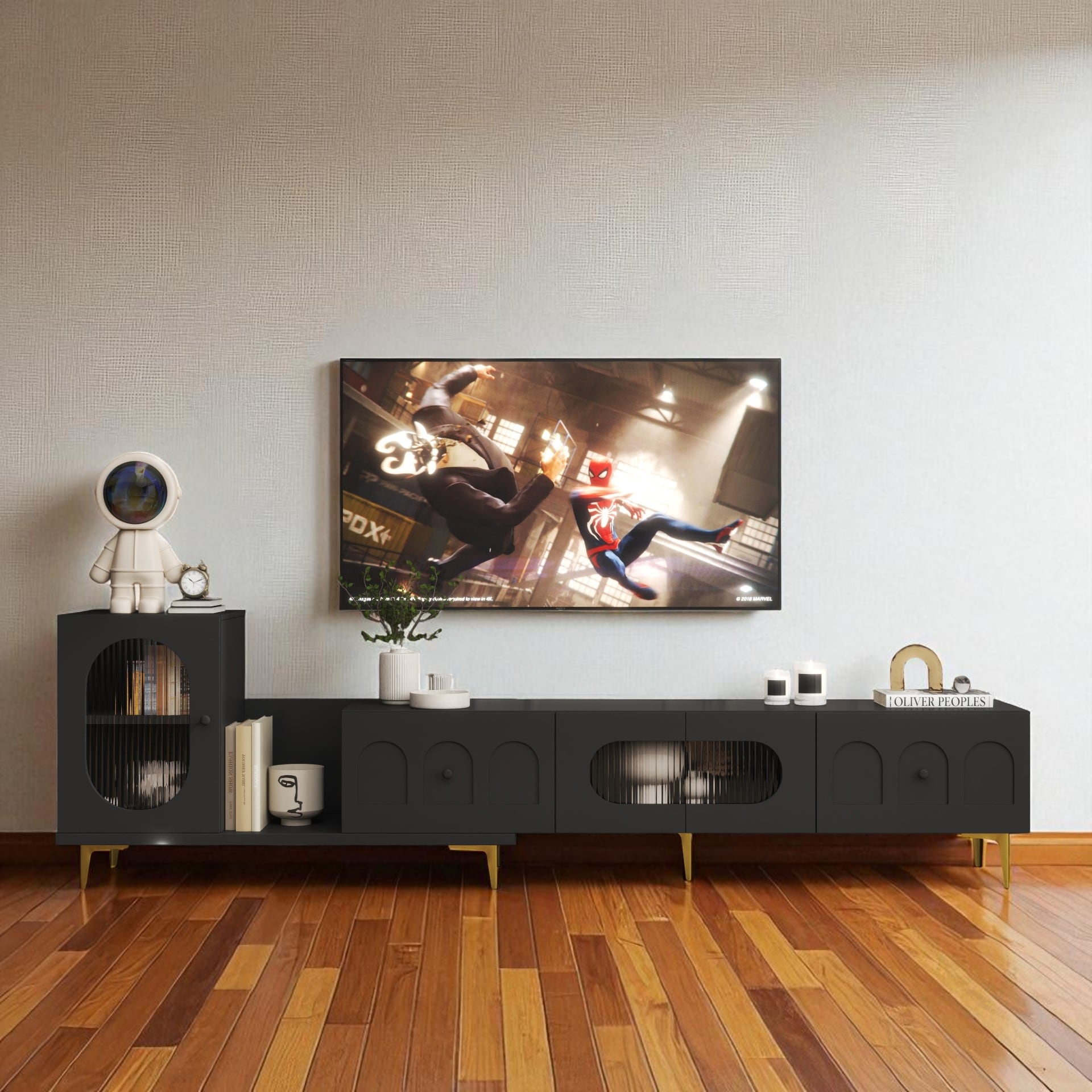 Roomfitters Modern TV Cabinet for TVs up to 95", Arched Fluted Glass Doors, Functional Media Console with Adjustable Storage
