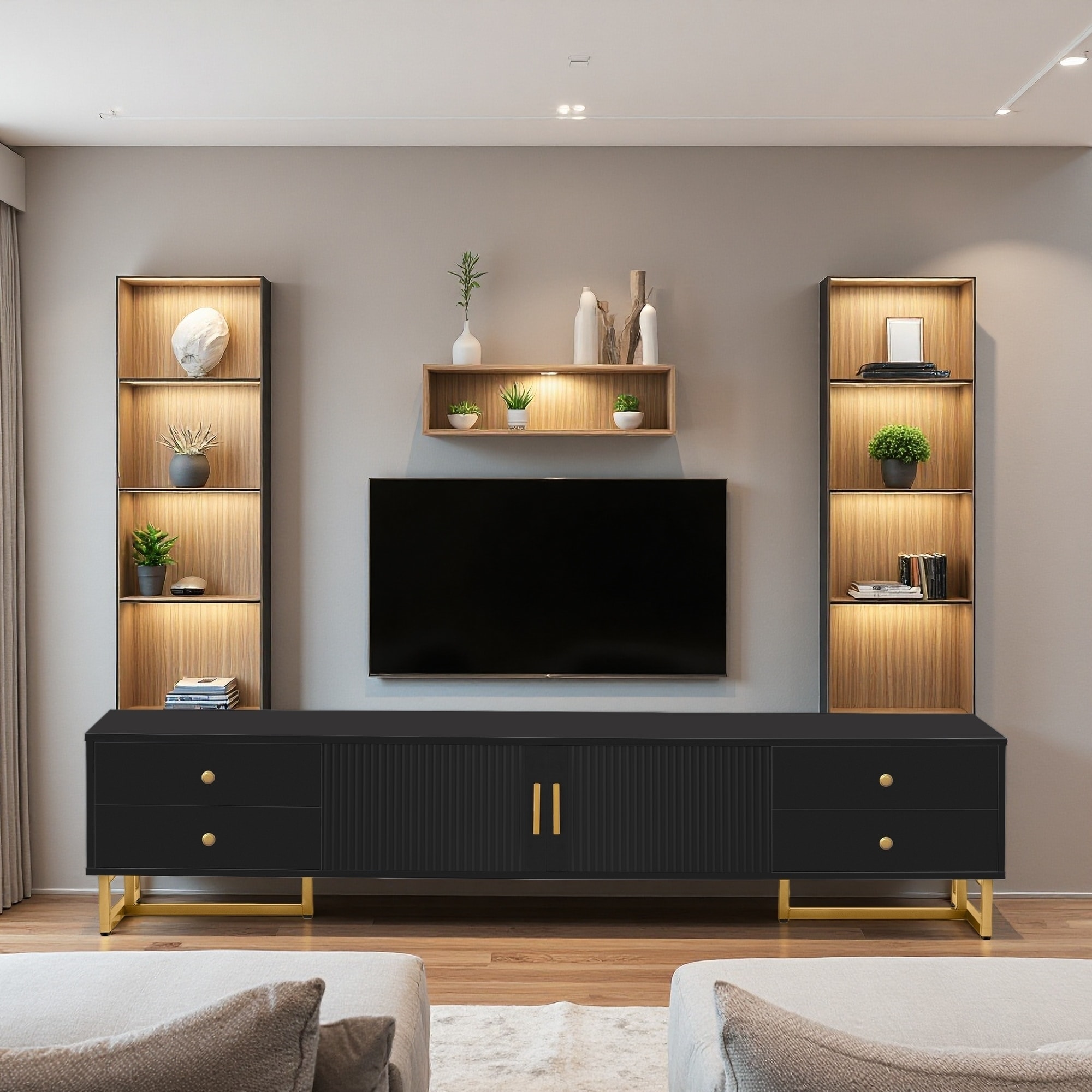 Modern TV Stand with 4 Cabinets Media Console Table for TVs up to 80", Entertainment Center with Drop Down Door