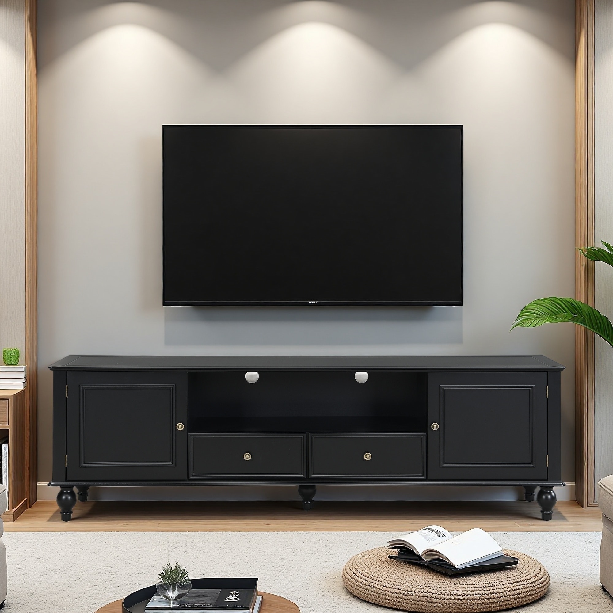 70.9" MDF Modern TV Stand with Drawers, Cabinet & Solid Wood Legs