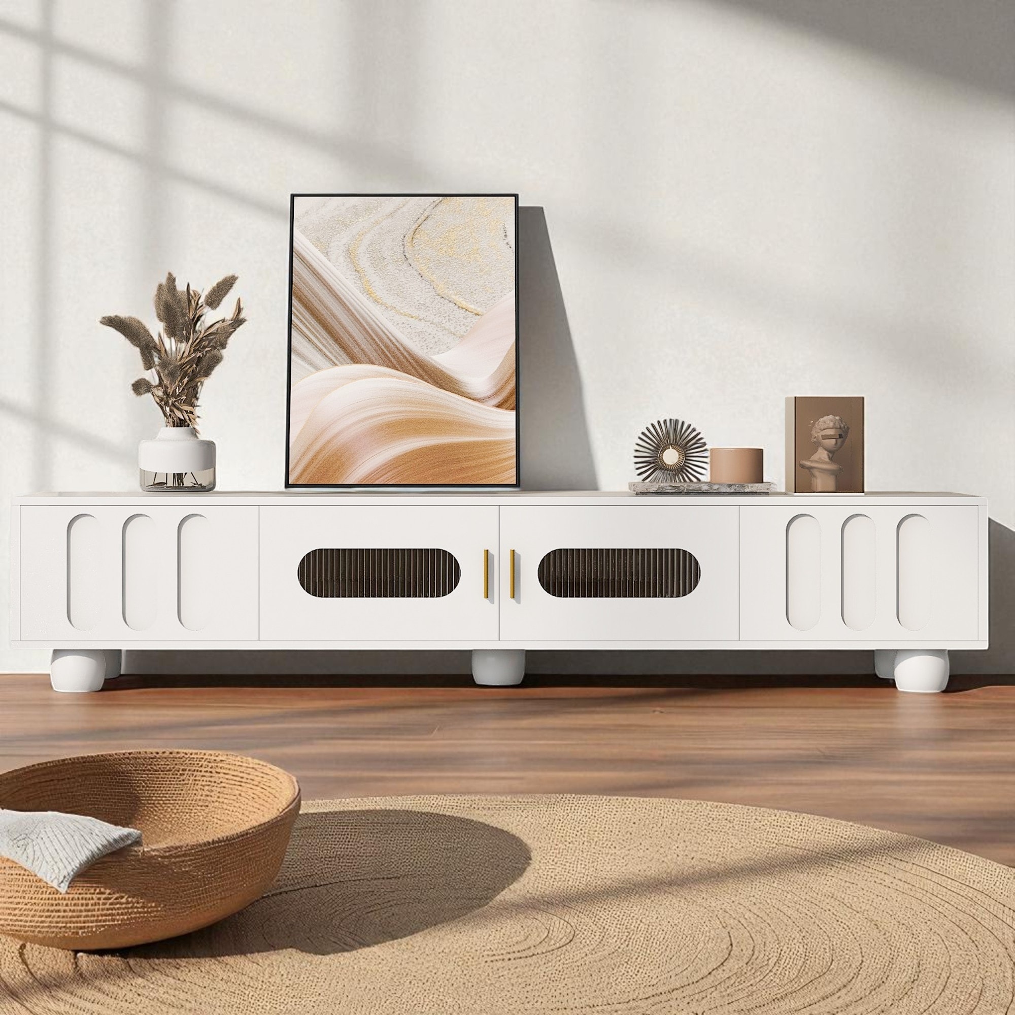 86.6" Particle Board TV Stand with Fluted Glass Doors, Drawers & Tempered Glass Shelf