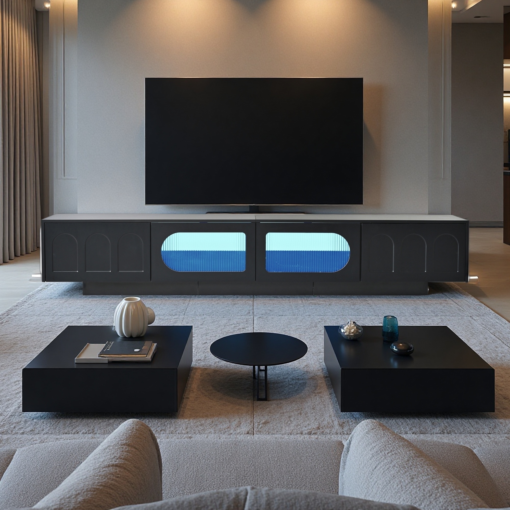 86.6" MDF TV Stand with Fluted Glass Doors, LED & Spacious Cabinets