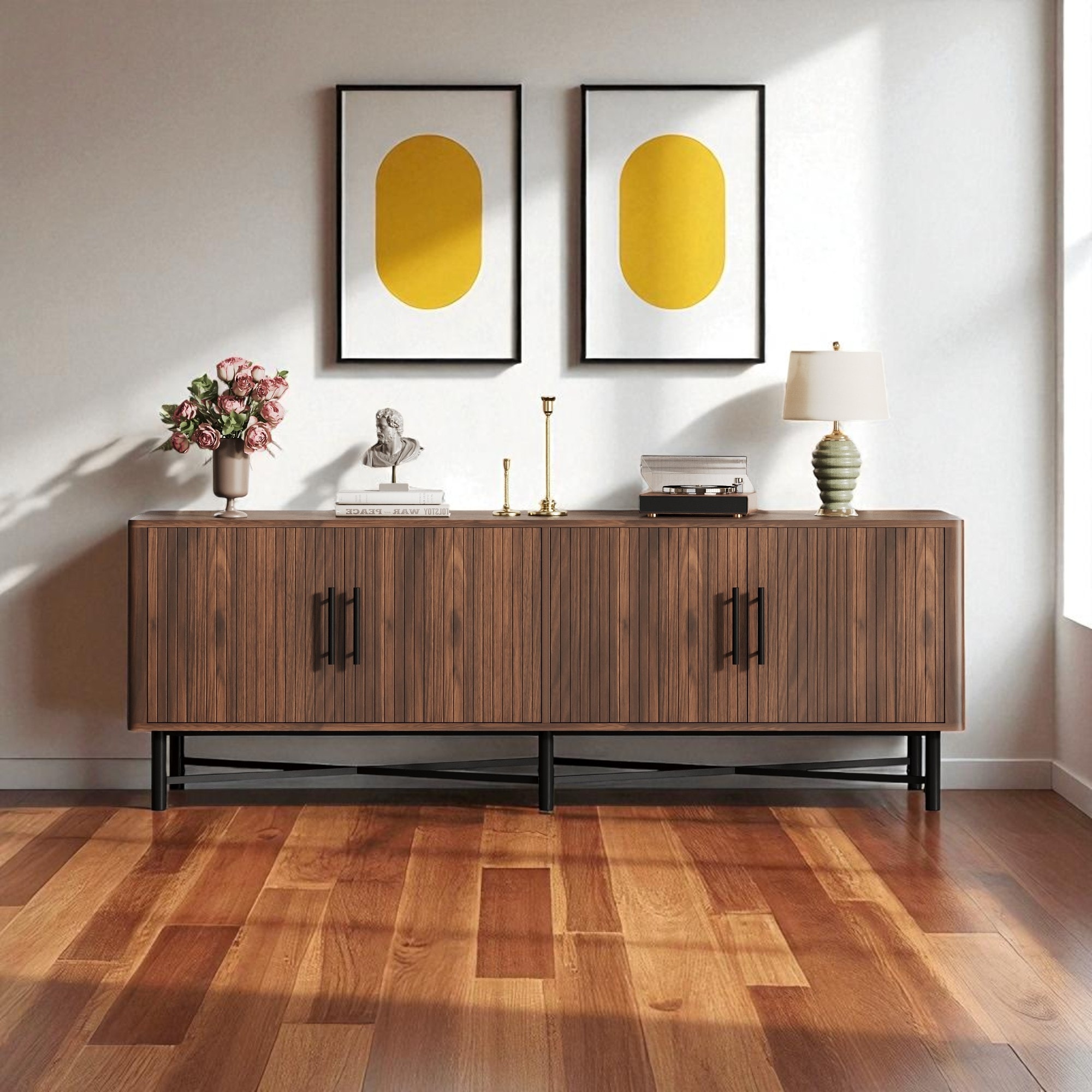 66 Inch Modern TV Stand with 4 Doors and Adjustable Shelves, Media Console Cabinet with Cable Management for TVs Up to 65 Inch