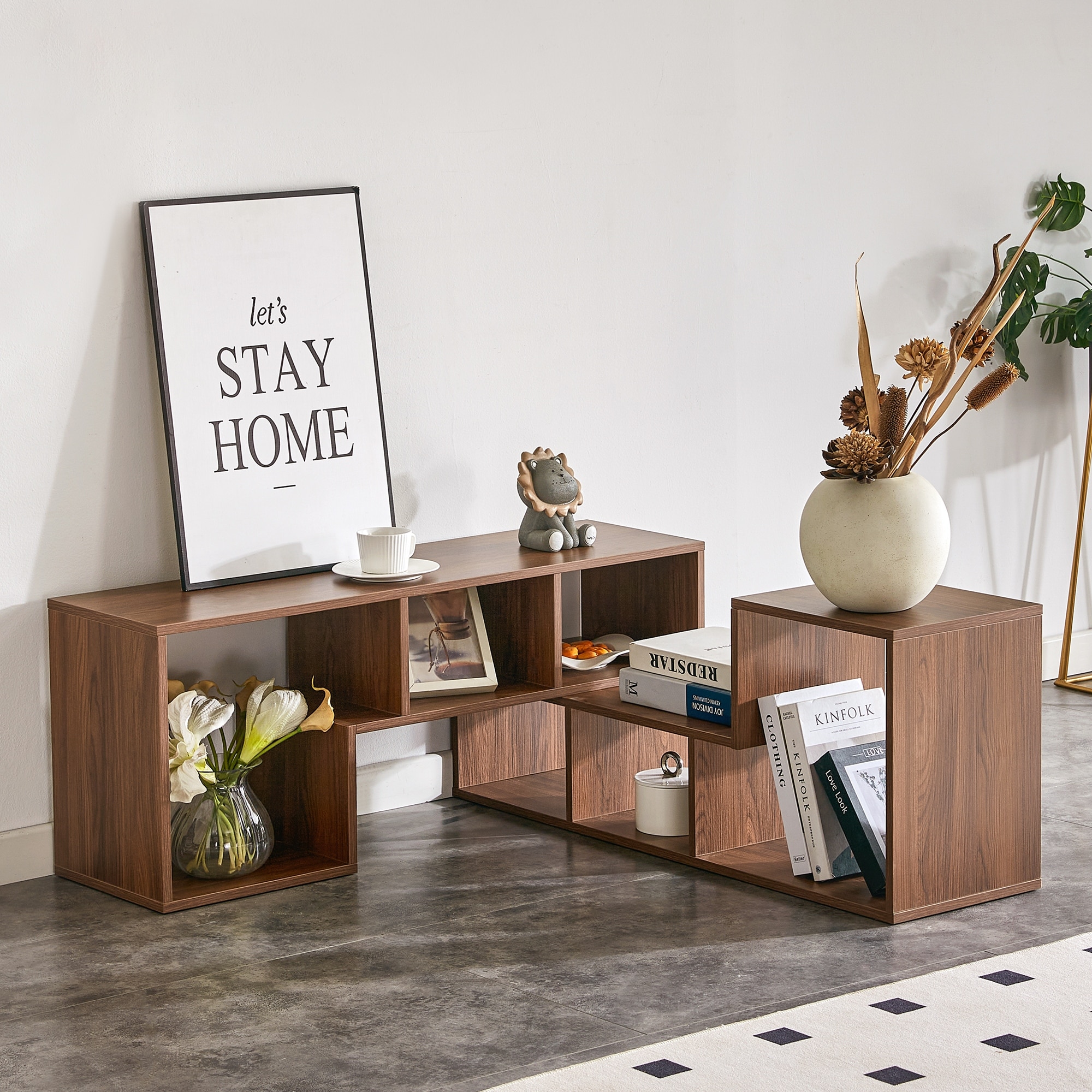 TV Stand with Adjustable Shelves for TVs Up to 70", Entertainment Center with Bookshelves for Living Room
