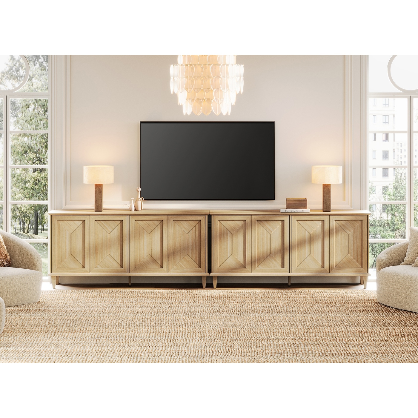 Modern Farmhouse TV Stand with Handcrafted Patchwork Doors for 55-130" TVs