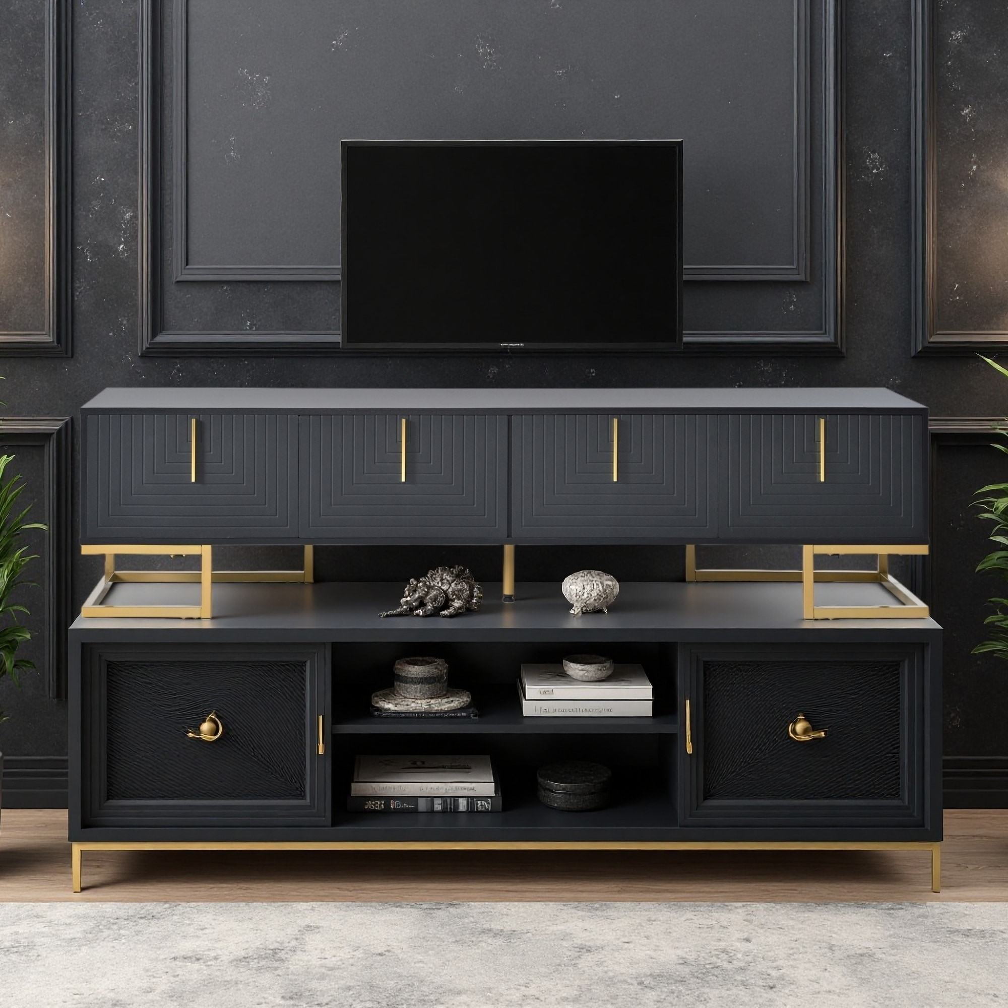 70.8" MDF Modern TV Stand with Metal Legs, Gold Handles & Adjustable Shelves