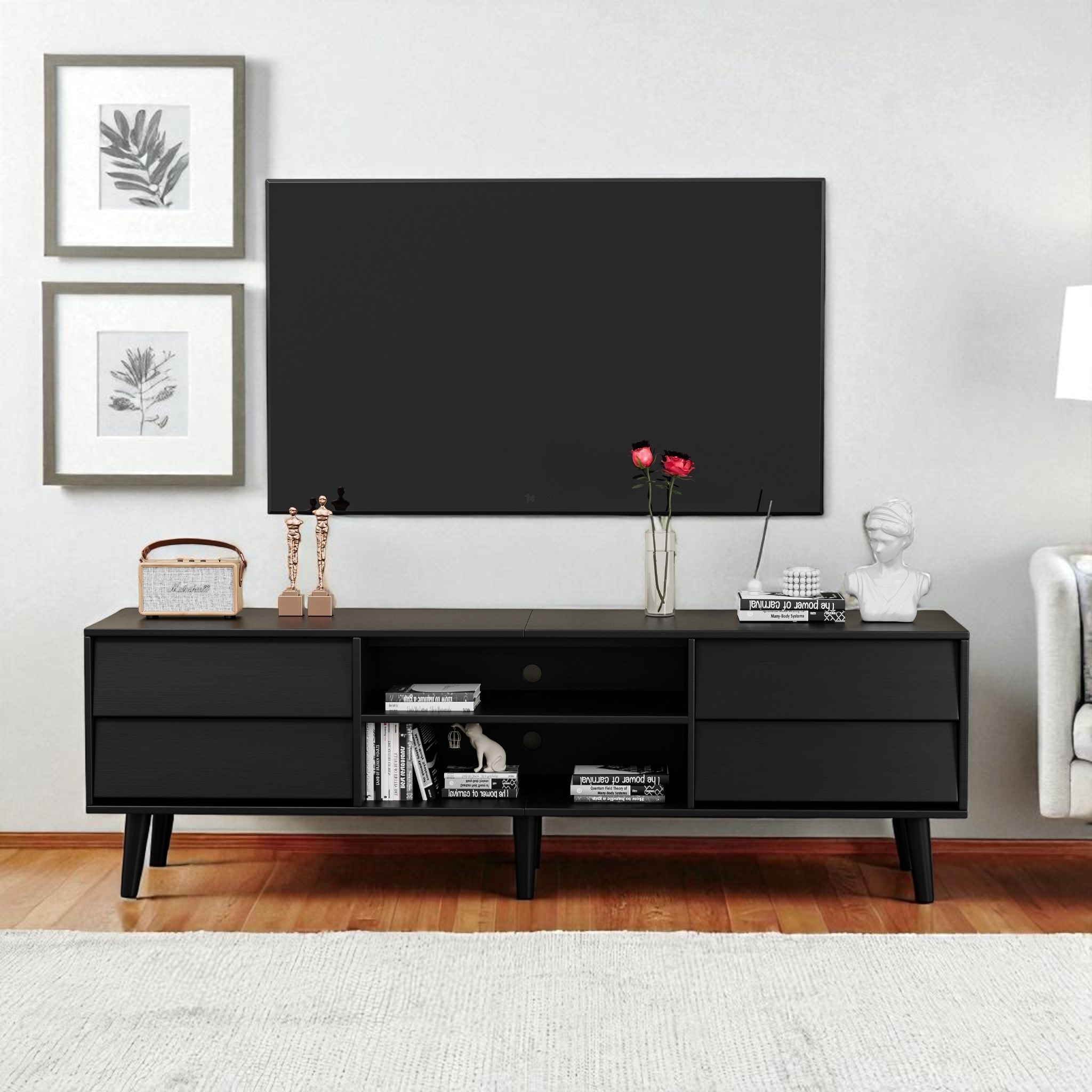 Mid-Century Console Table for TVs up to 75" Entertainment Center with Storage and 4 Drawers