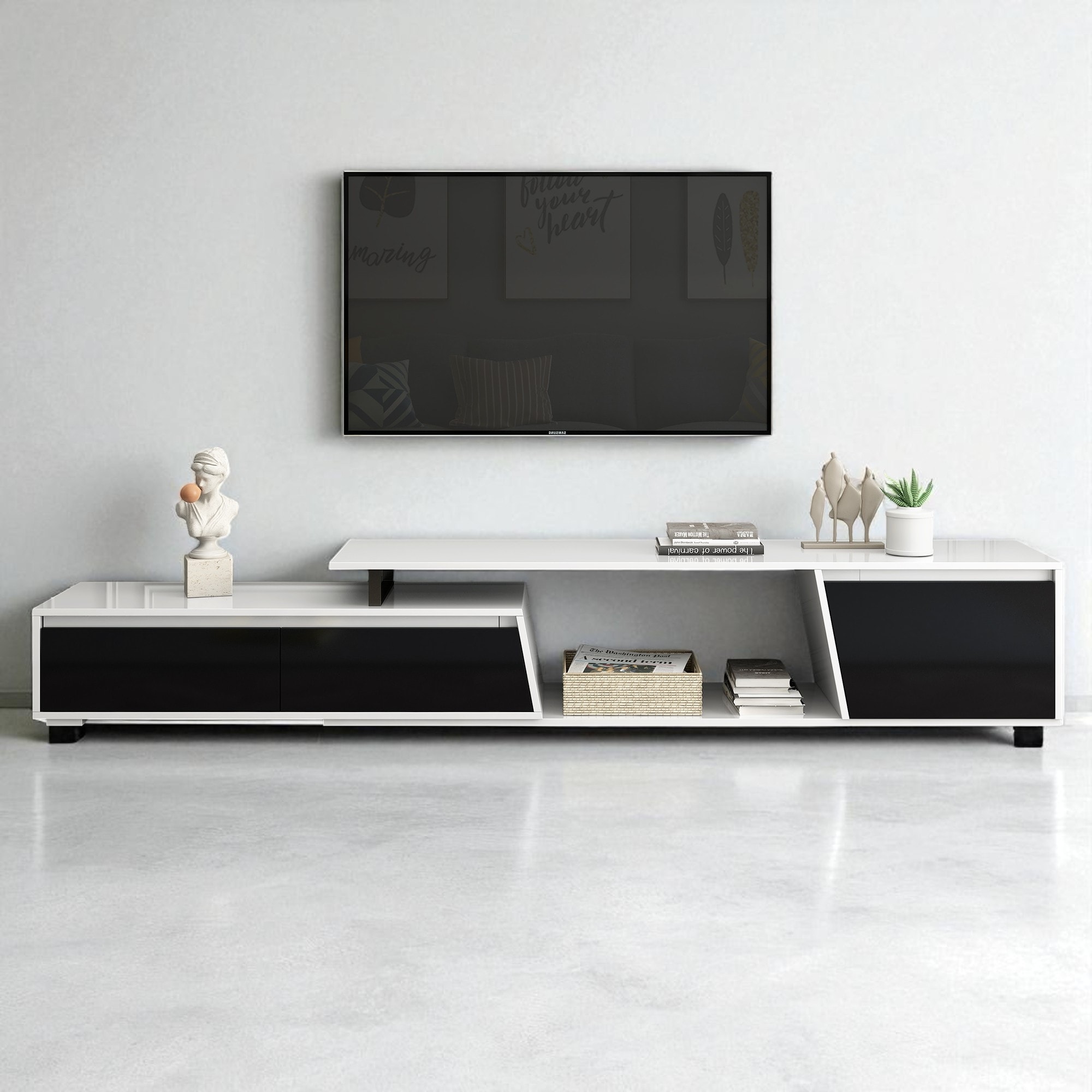 Modern Extendable TV Stand with 2 Drawers & Cabinet, Minimalist Rectangle Media Console for Living Room, Fits TVs Up to 100"