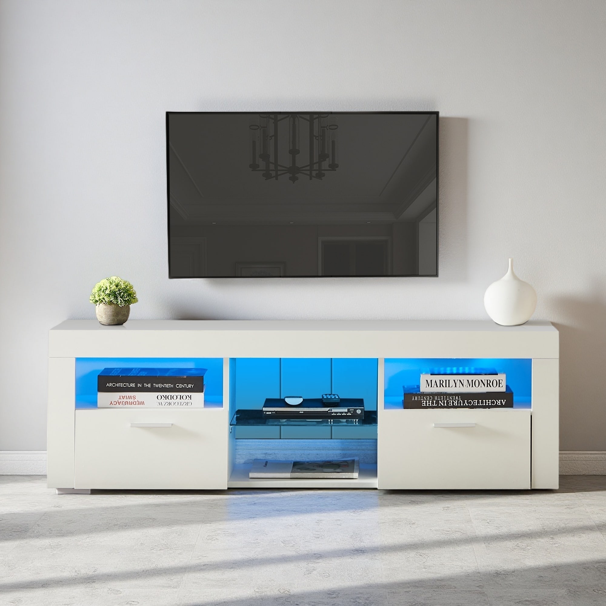 Modern TV Stand with LED Lights, High Gloss Cabinet & Storage Drawers, 55"