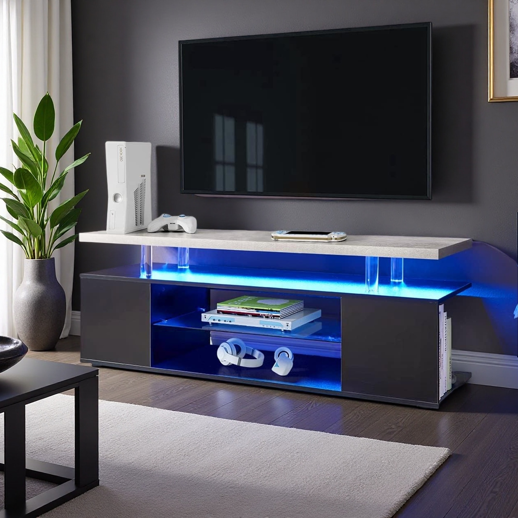 51" LED Gaming TV Stand with Side Cabinet & Media Storage Console