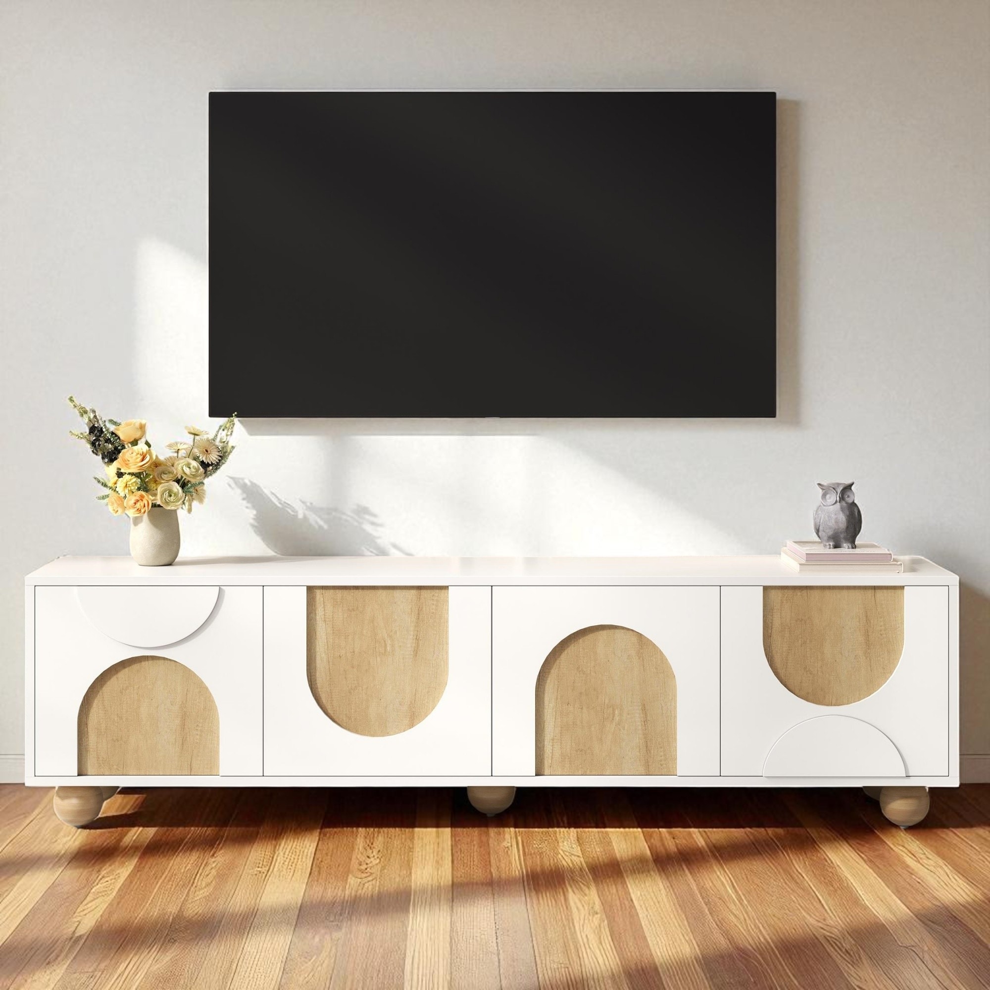 Modern 70.87" TV Stand for 80 Inch TVs, Storage Cabinet with 4 Doors, Particle Board Media Console for Living Room or Bedroom