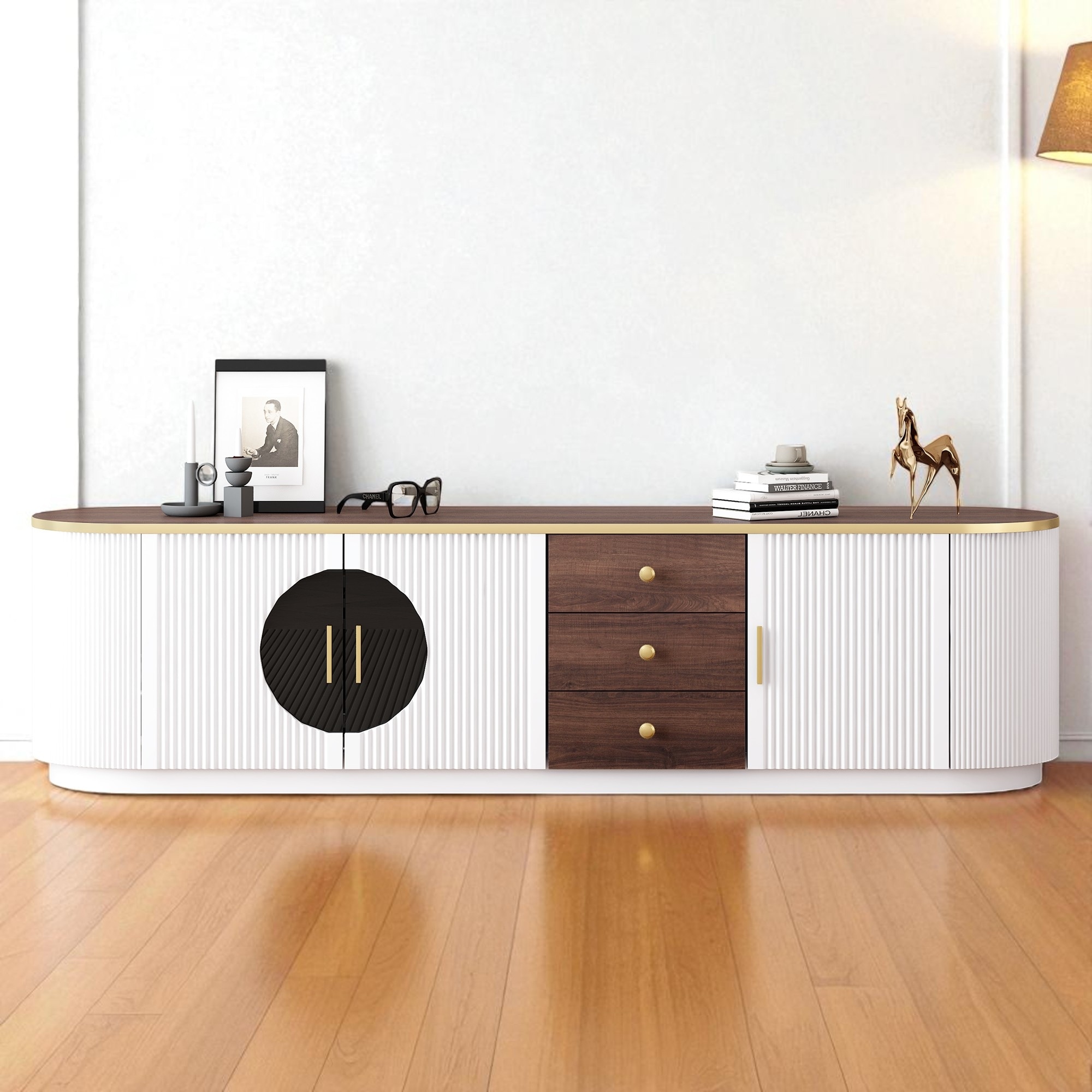 Modern Wood TV Stand Sideboard for 65+ Inch TV with Adjustable Shelves & Gold-Plated Legs for Living Room