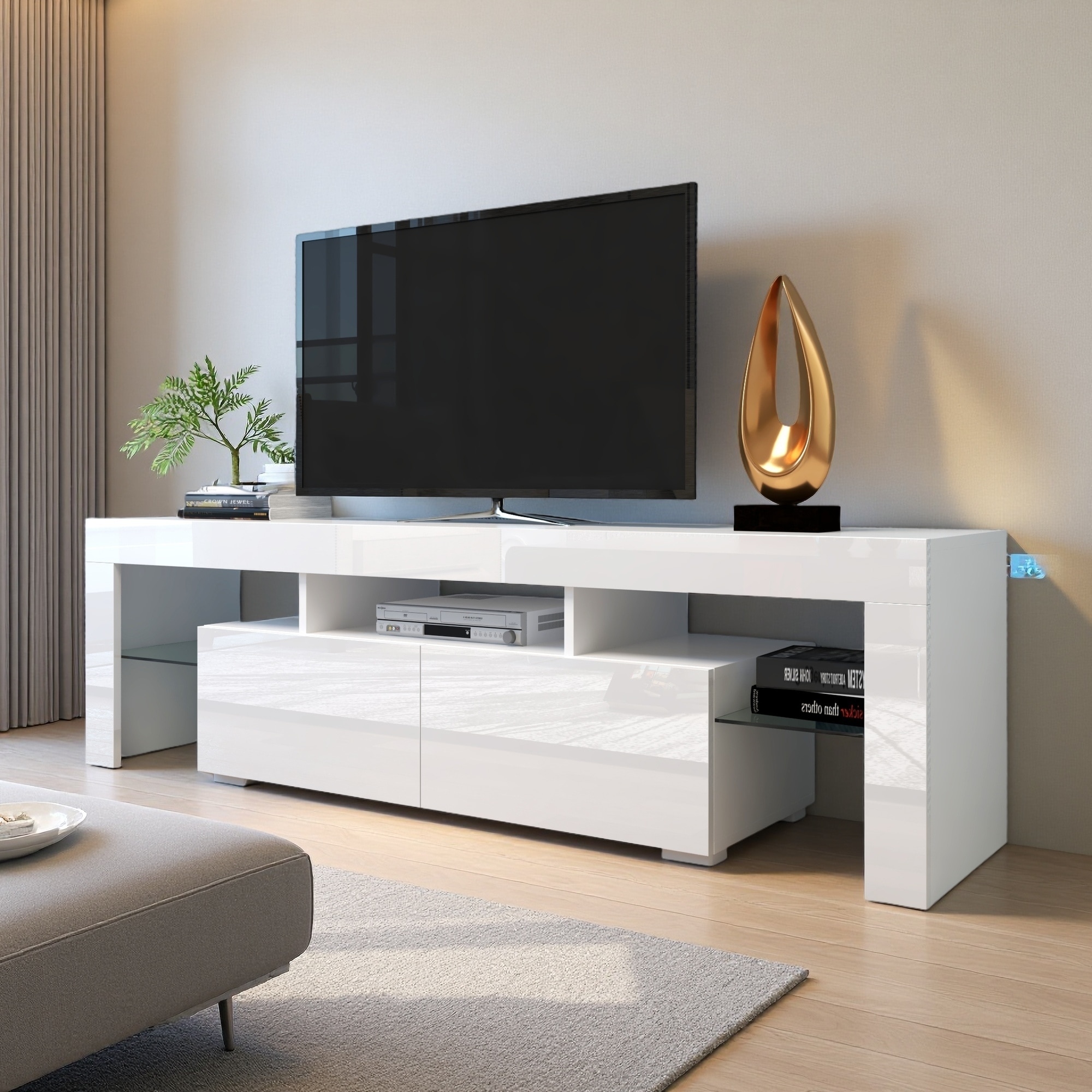63" MDF Modern TV Stand with Adjustable LED Lights and Storage Drawers for Living Room, Kitchen, Hallway