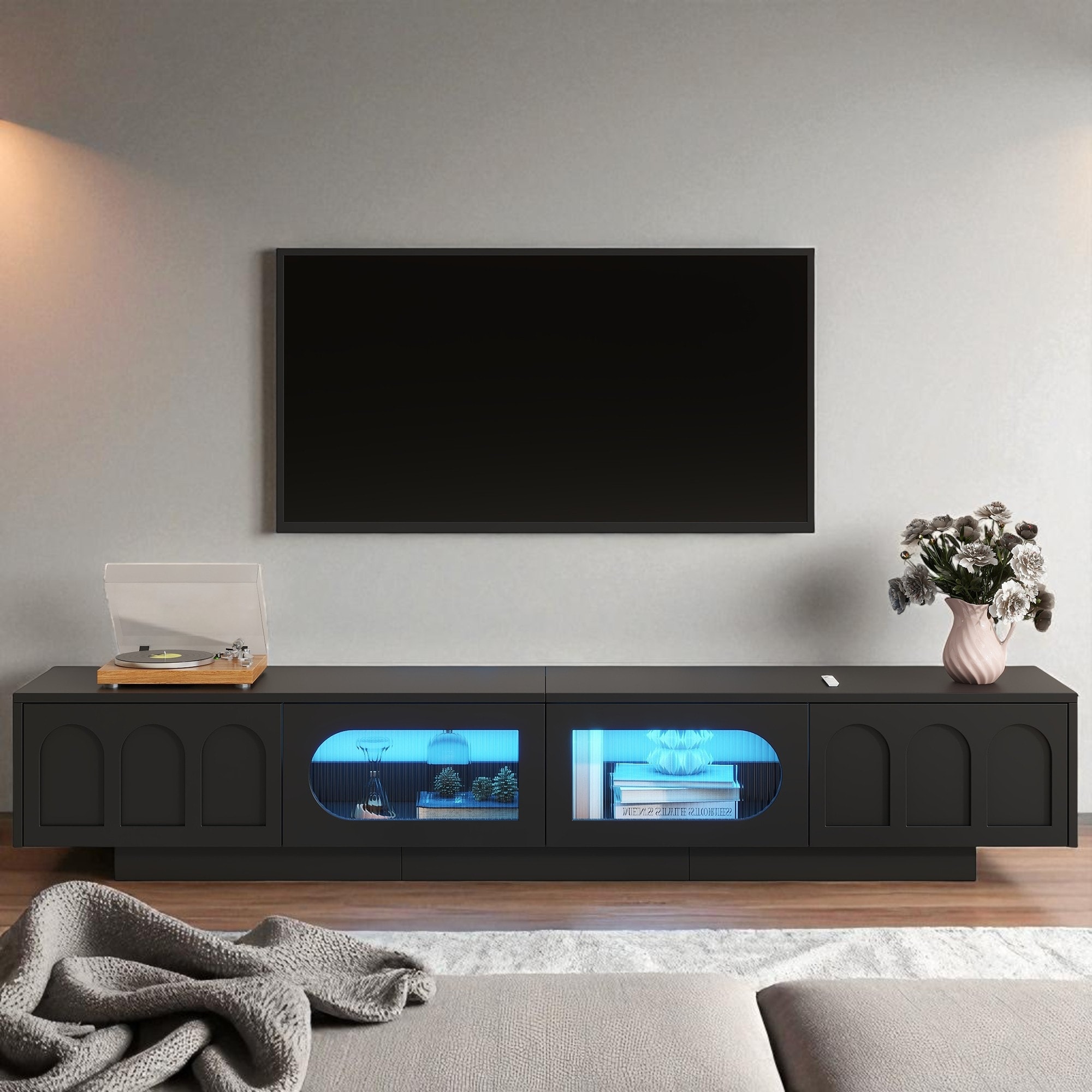 TV Stand with Fluted Tempered Glass Arched Doors, 86 Inch Entertainment Center with APP-Controlled LED Lights and Storage