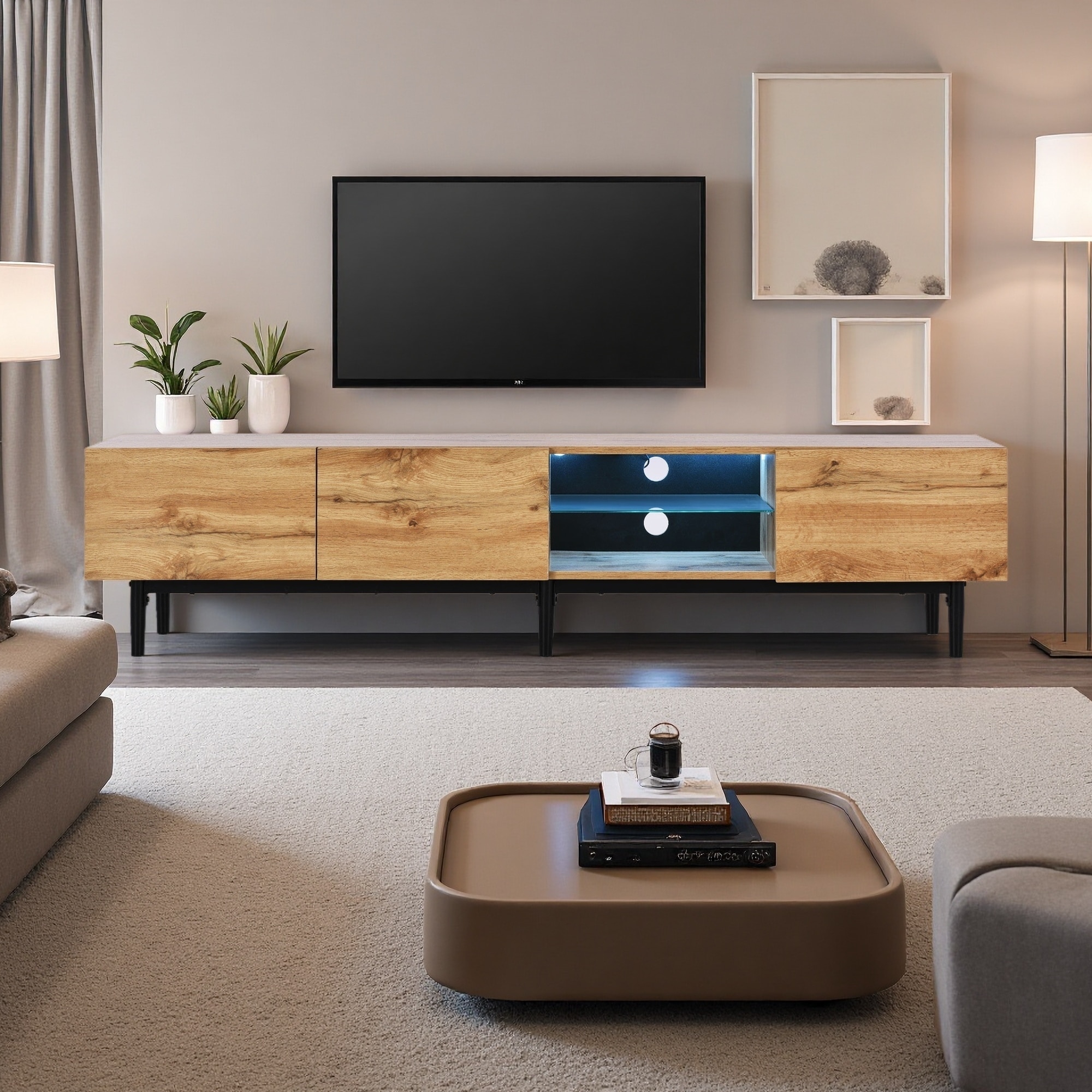 70.9" MDF Modern TV Stand with 4 Cabinets, Open Shelves & LED Lights