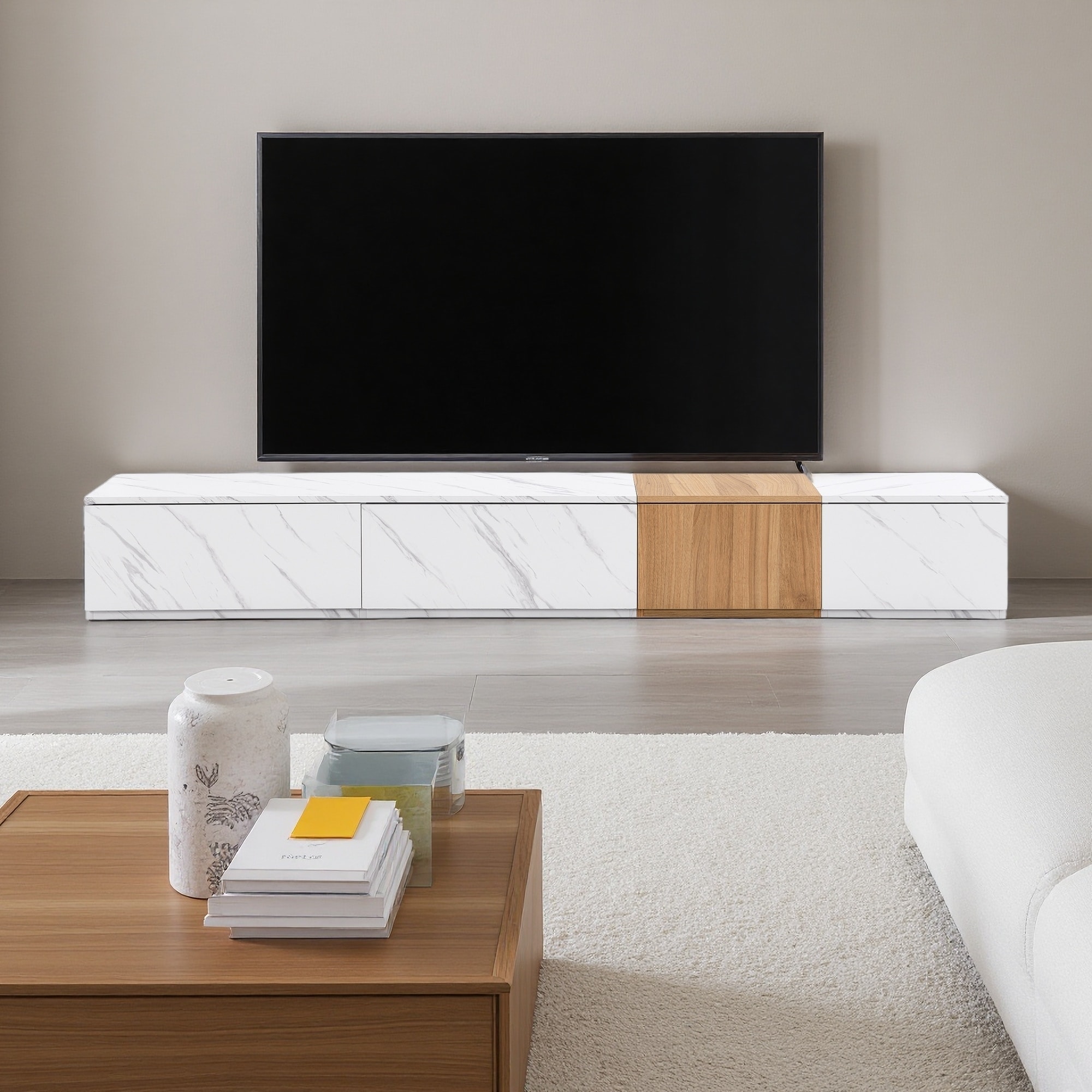 78.7" Faux TV Stand with 4 Drawers, Free-Combination Design, Modern Look