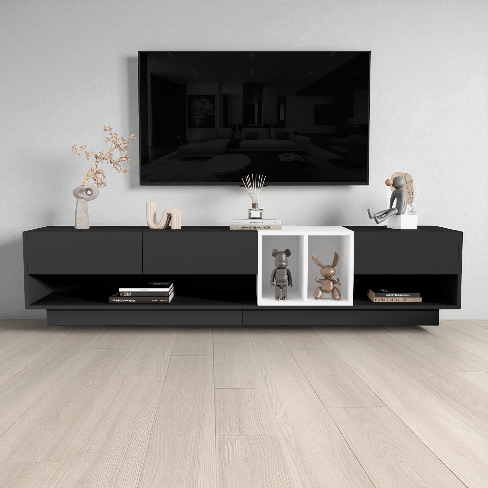 Modern Two-Tone TV Stand for TVs Up to 80 Inch, Media Console with 3 Drawers and Open Compartments, Sleek Storage Cabinet