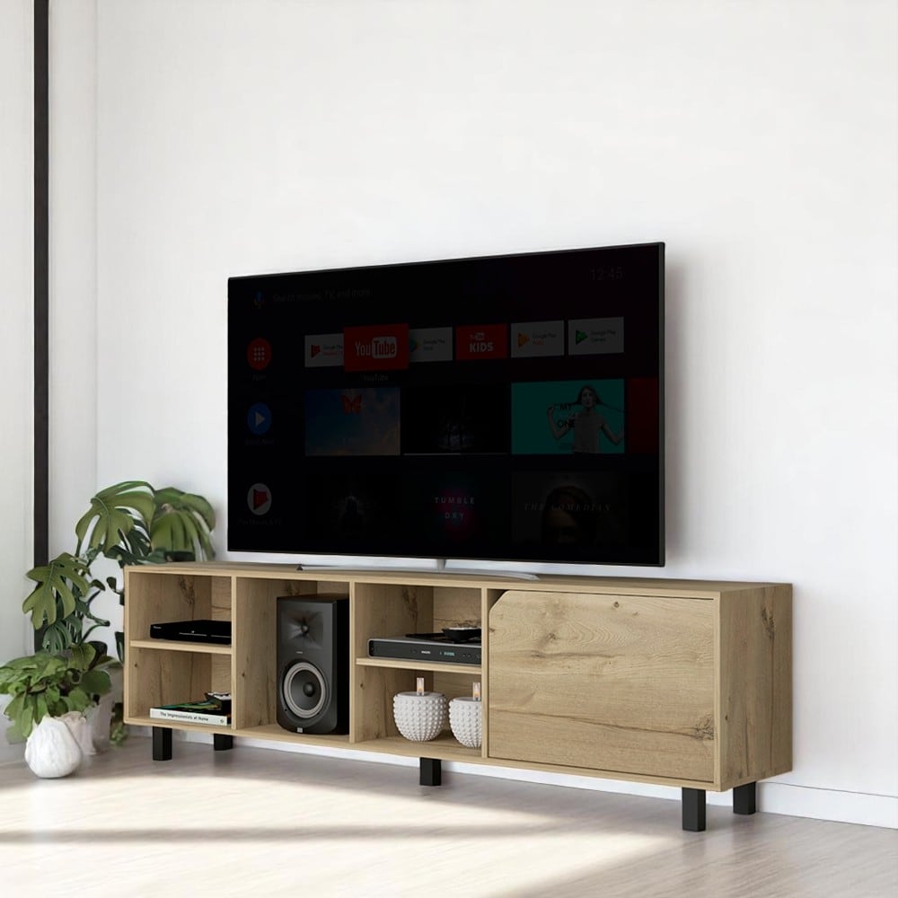 TV Stand Estocolmo for TVs Up to 70", 4 Open Shelves with Back Cable Holes,5-Leg Support, Modern Minimalist Design,Light Oak