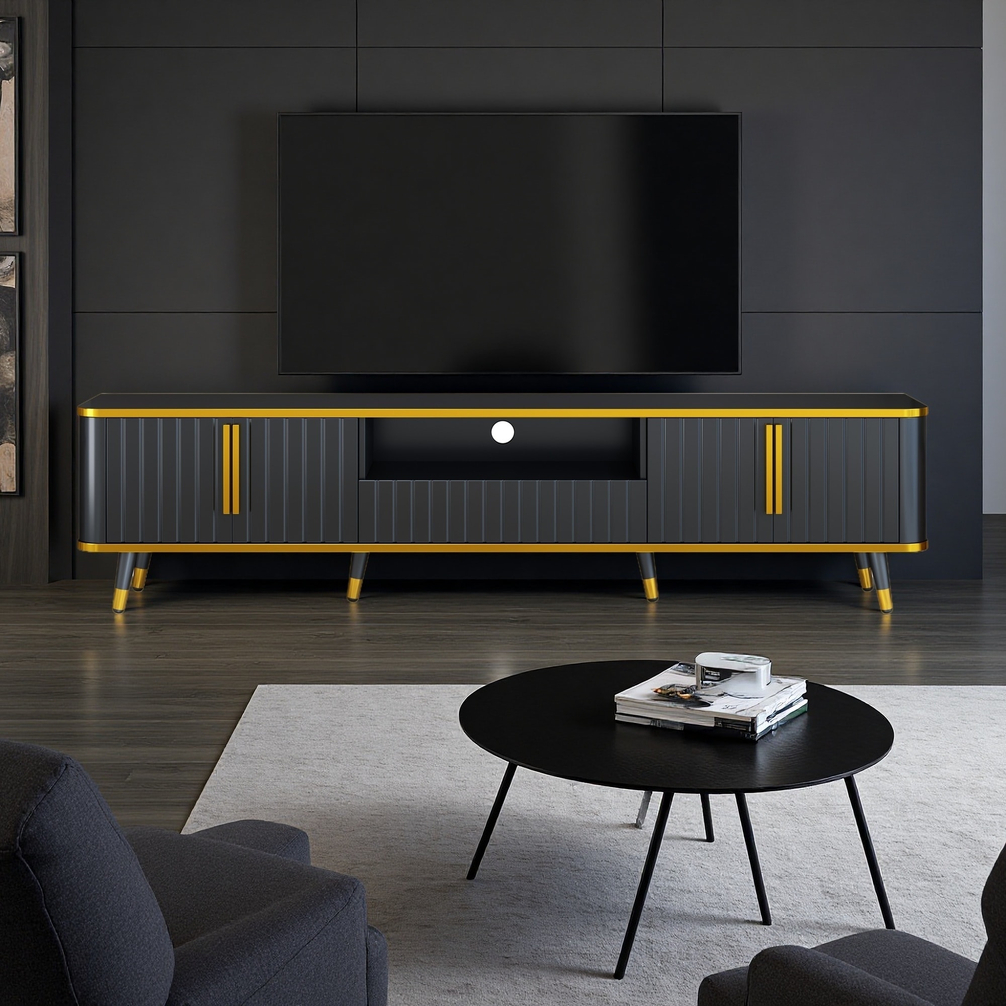 78.8" Minimalist TV Stand with Open Shelf, Cabinets & Golden Iron Legs