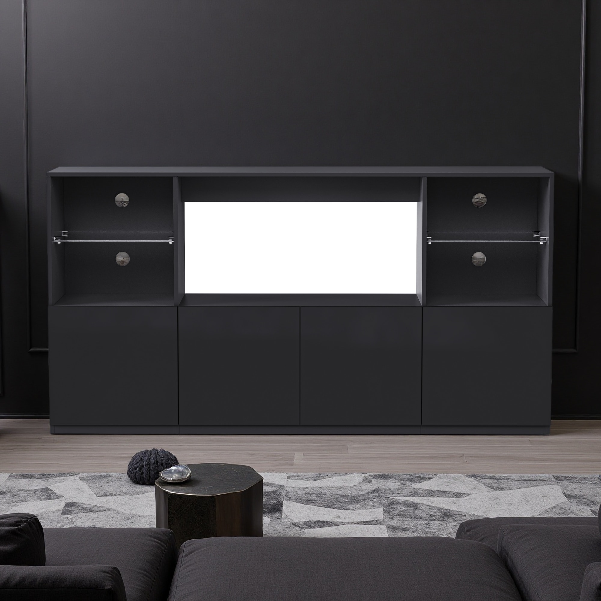 67 in. Black Media TV Stand in High Gloss Paint MDF