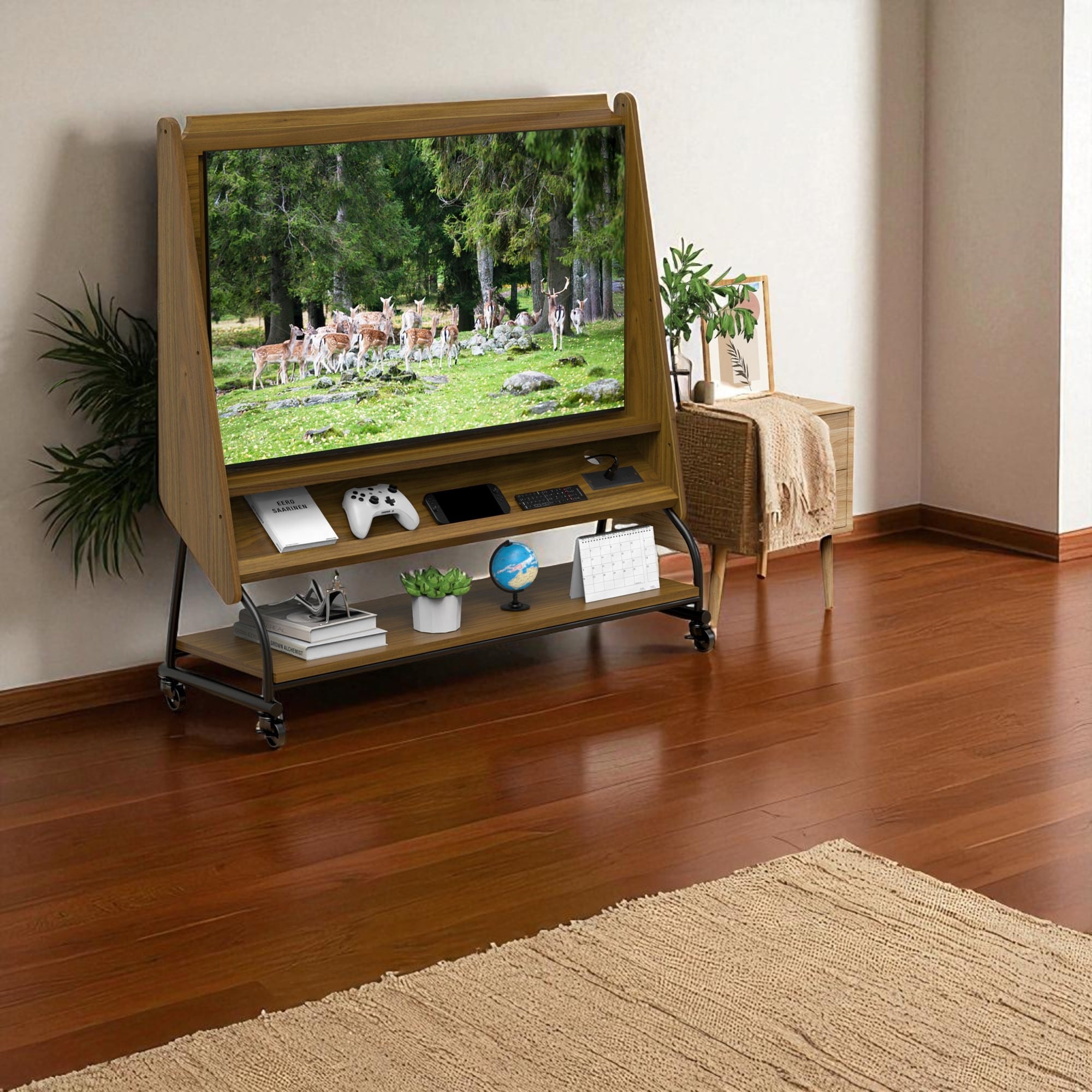 Mobile TV Stand for 32-50" TVs with Projector Screen, Rolling Cart with Shelves & Lockable Wheels for Bedroom or Living Room