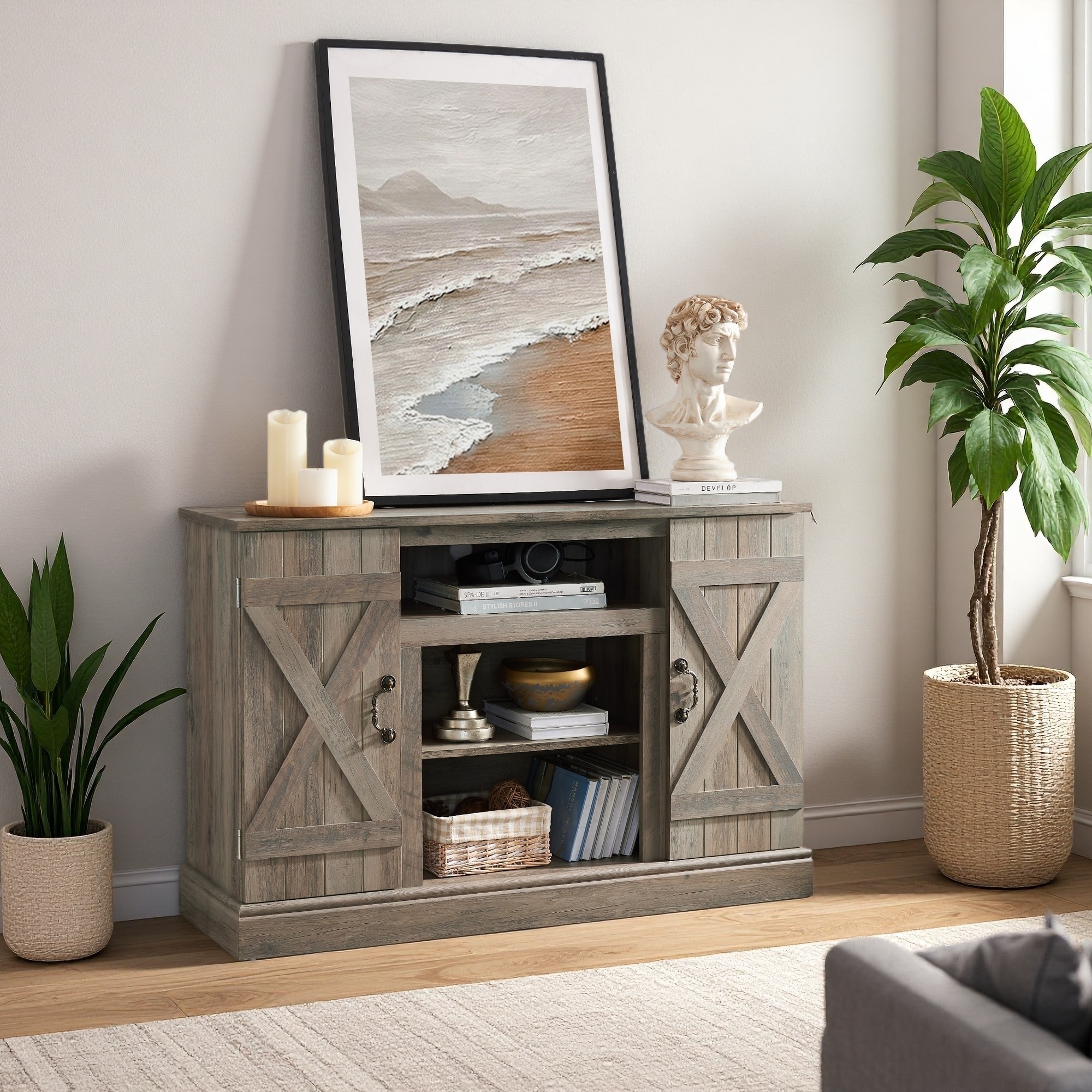 47" Farmhouse TV Stand for TVs up to 50", Classic Media Console with Open and Closed Storage, Antique Entertainment Cabinet