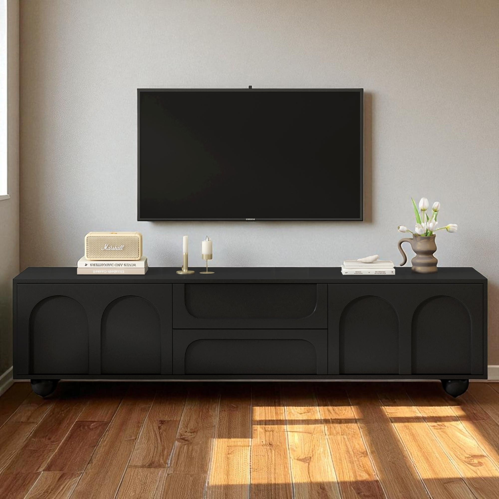 70'' TV Stand with Arched Doors & 2 Drawers, Modern Media Console with Rebound Device and 5 Iron Legs for TVs up to 75''