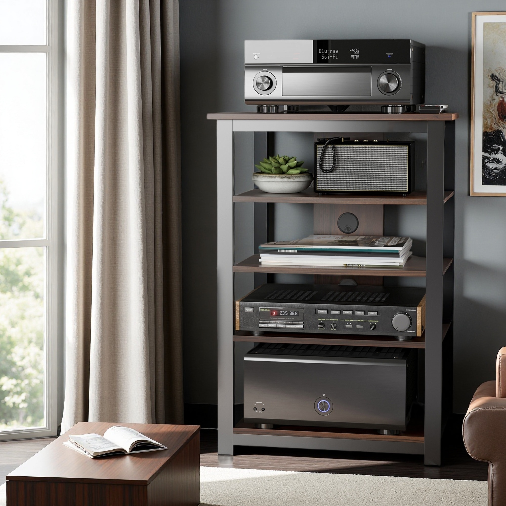 Corner TV Stand AV Media Tower with Storage Shelves and Steel Frame, Audio Cabinet Entertainment Unit for Living Room