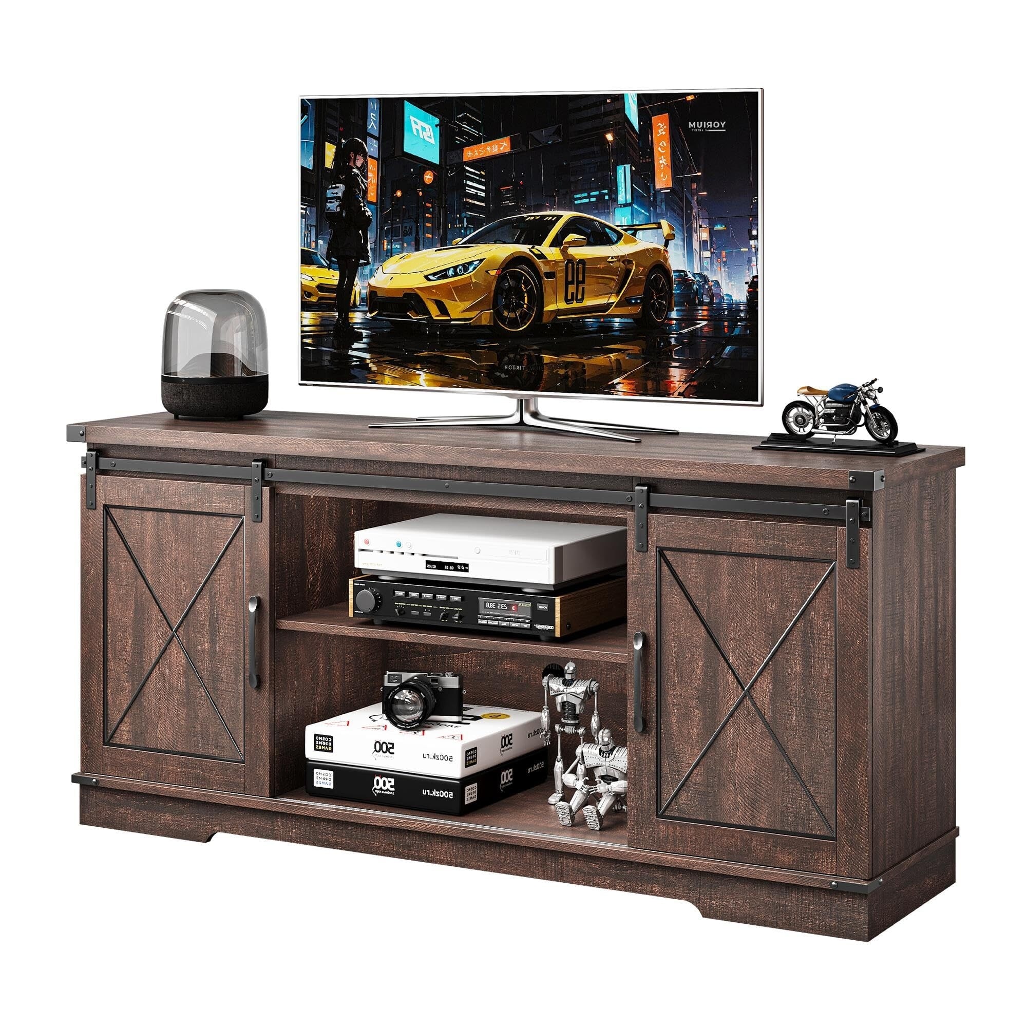 TV Stand for TVs Up to 65 Inch, 27.6" Tall Entertainment Center with Sliding Barn Doors & Adjustable Shelves