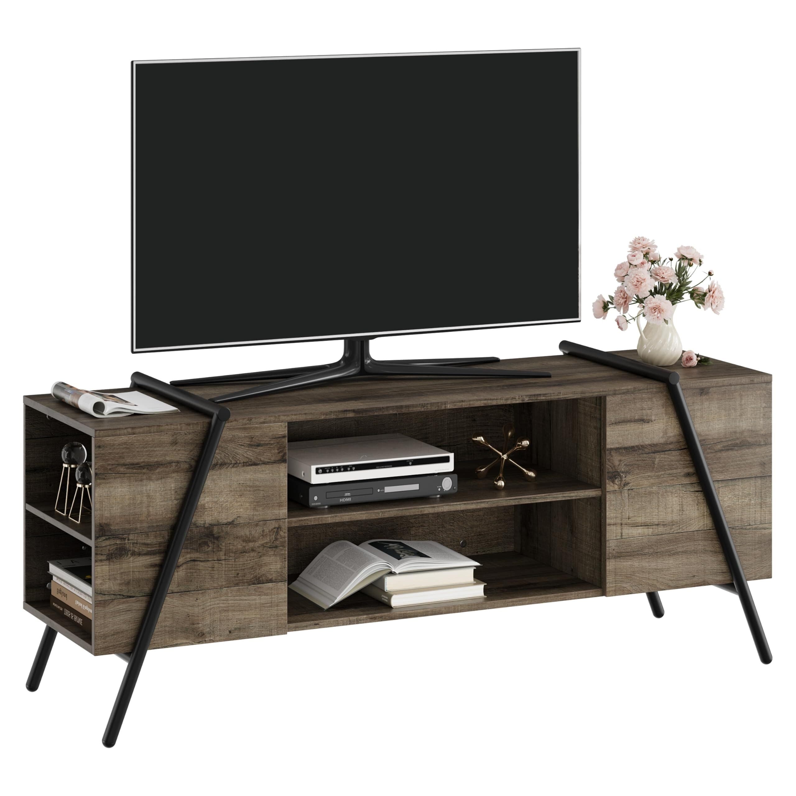 55 Inch TV Stand with Slanted Metal Legs, Industrial Media Console with Adjustable Open Shelves