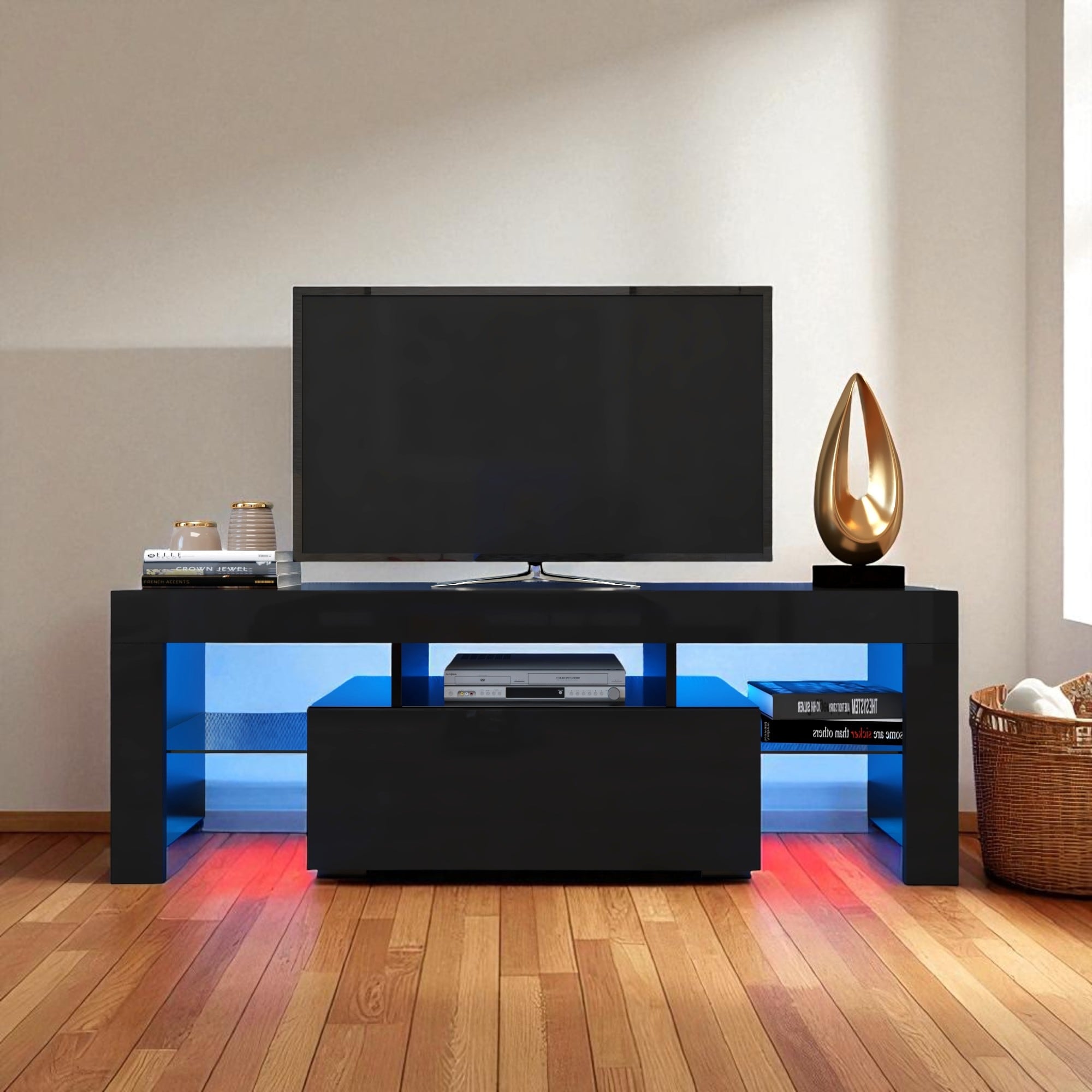 Modern 51" TV Stand with LED RGB Lights, Storage Shelves & Cabinet for Gaming Consoles, Living Room, Bedroom, Flat Screen TVs