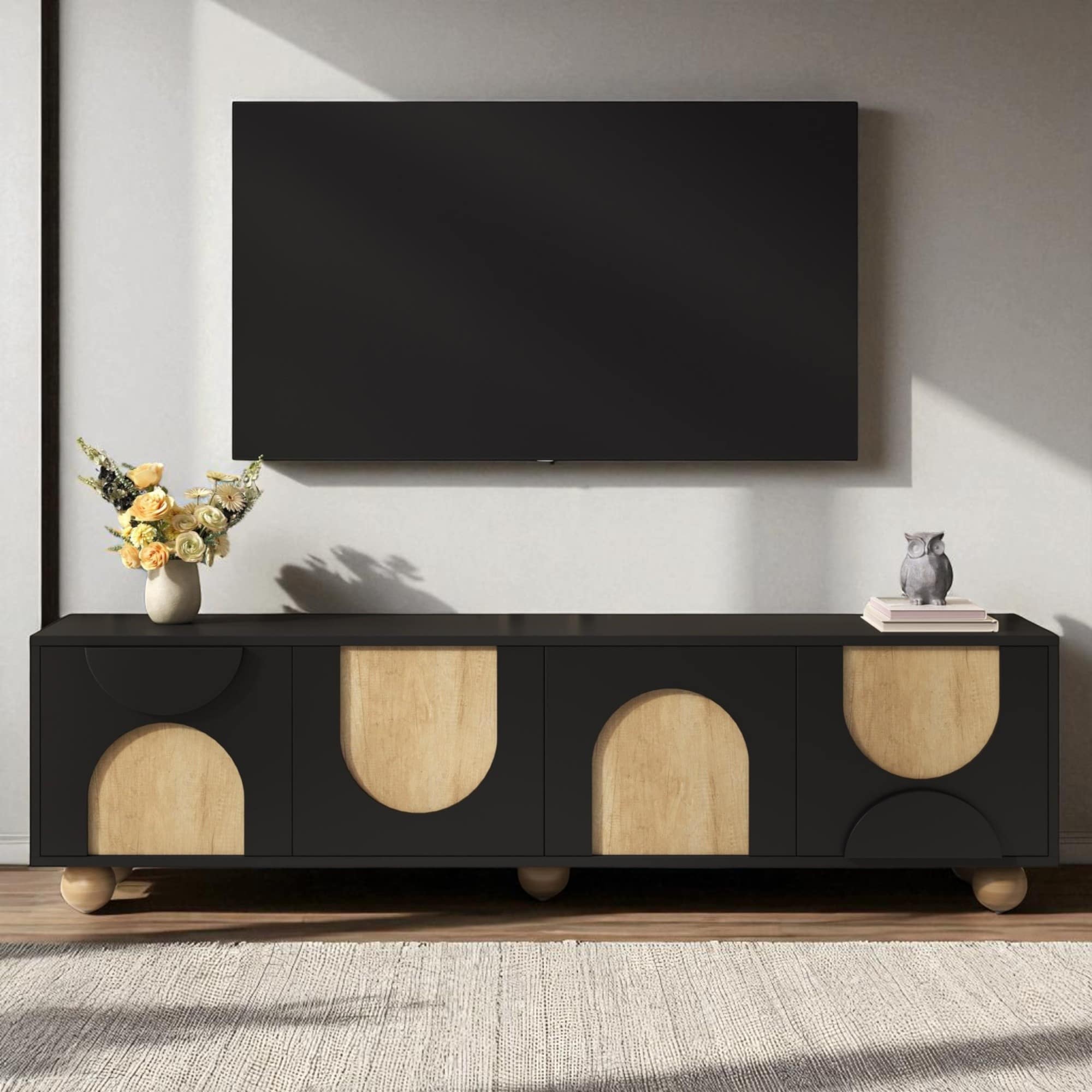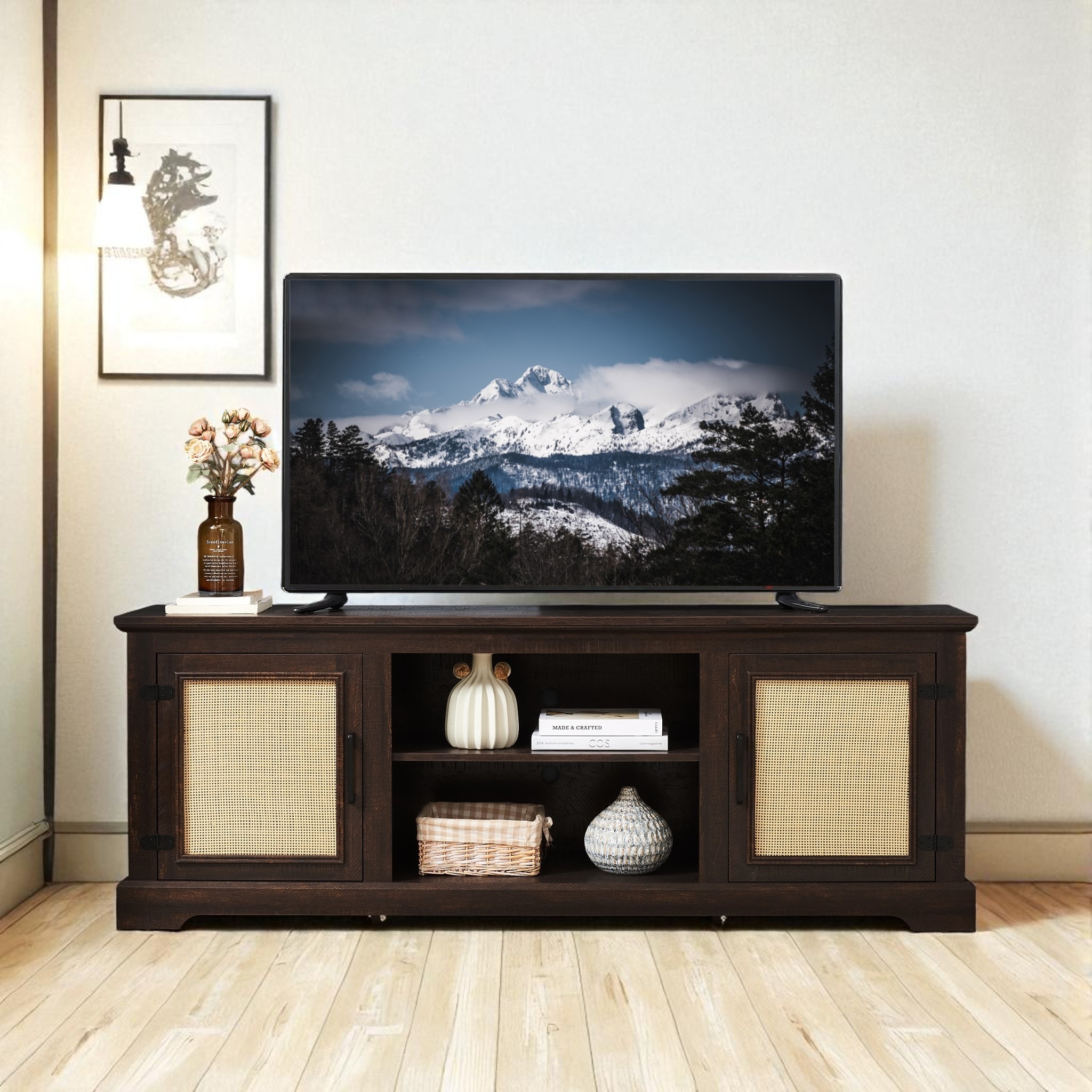 Farmhouse Rattan TV Stand for TVs up to 70", 65" Media Console with 2 Cabinets, 2 Shelves & Cable Management