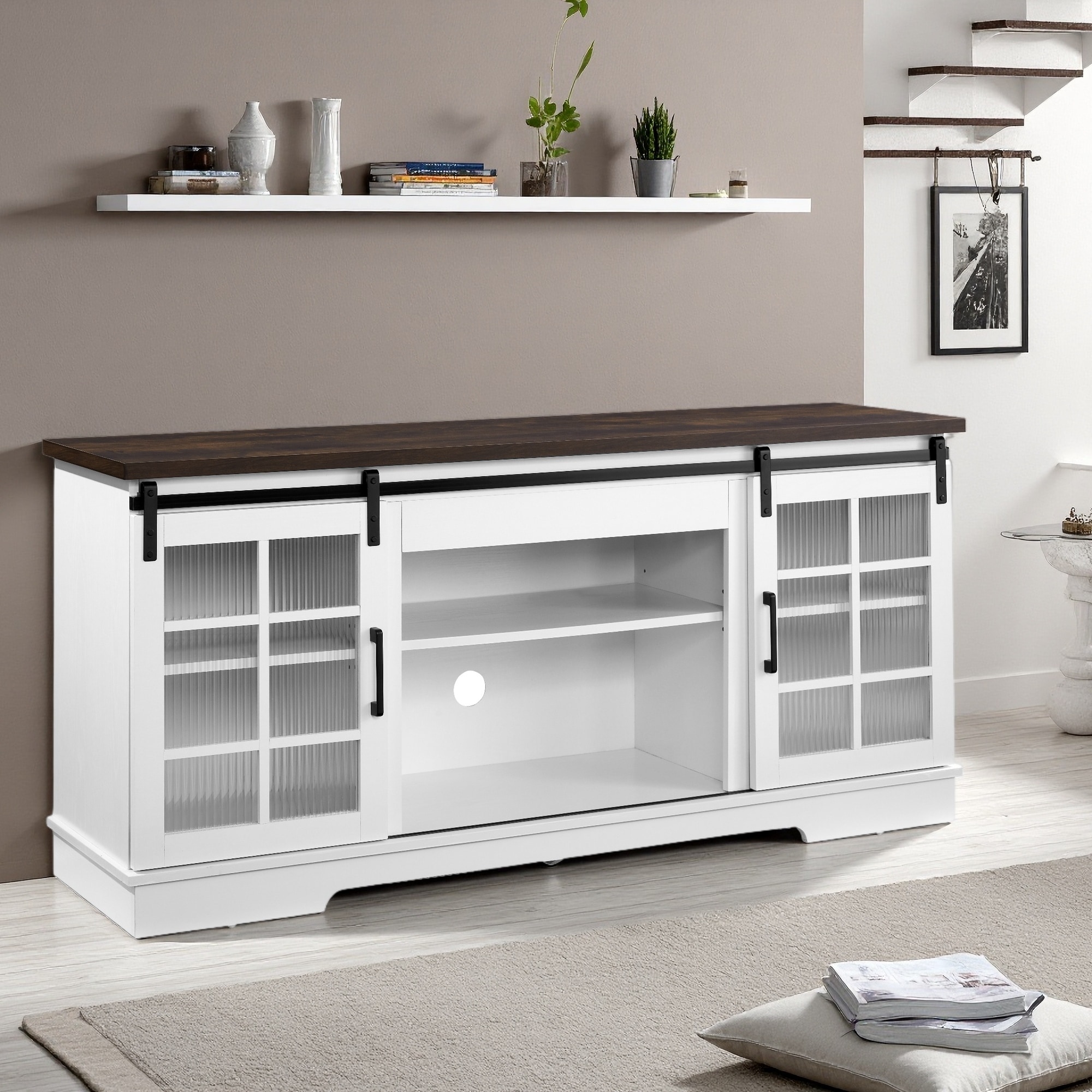 Farmhouse Style 60" TV Stand with Sliding Barn Doors & Media Compartments