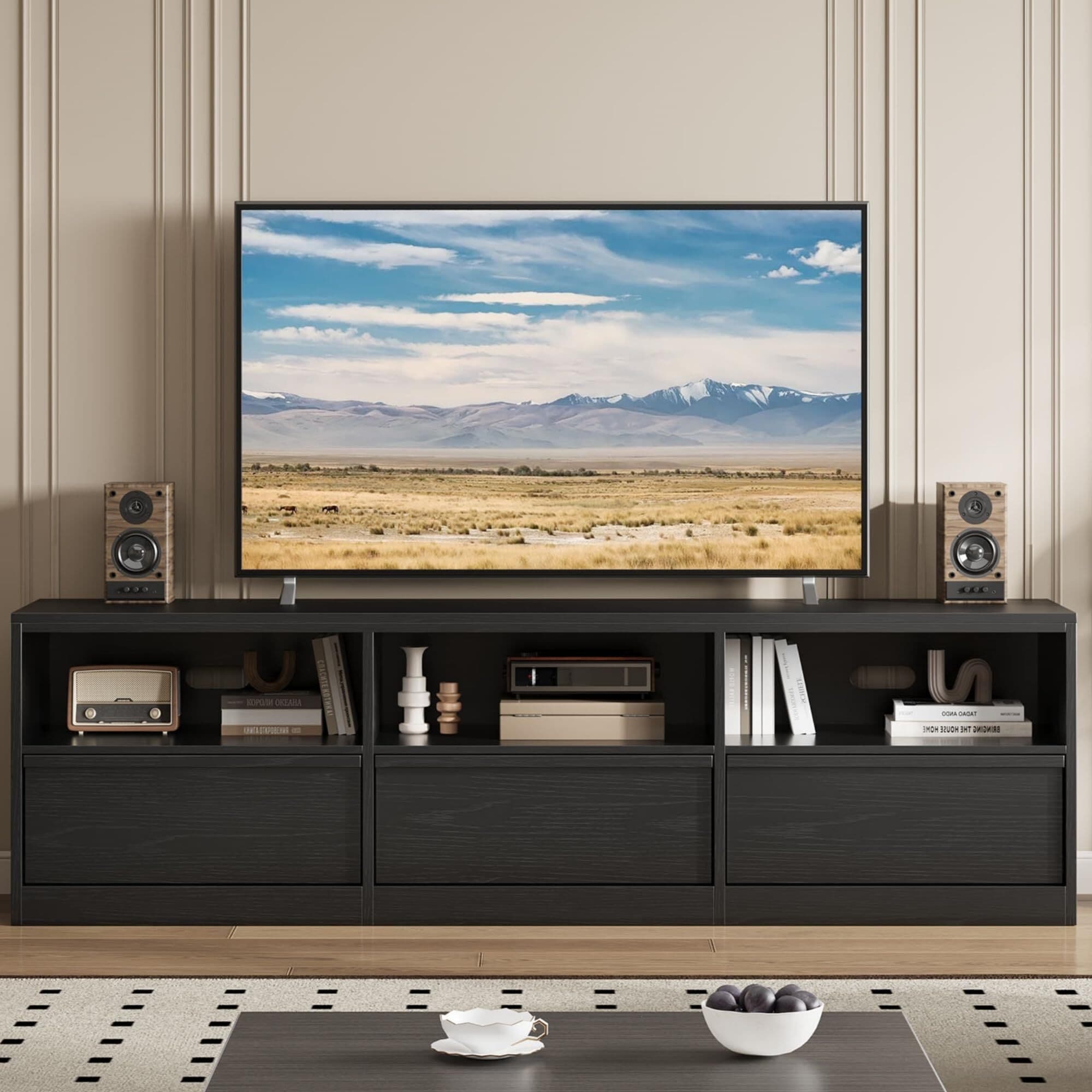 Mid Century Modern TV Stand for 65 70 75 Inch TVs, Industrial Entertainment Center with 3 Drawers & Open Shelves
