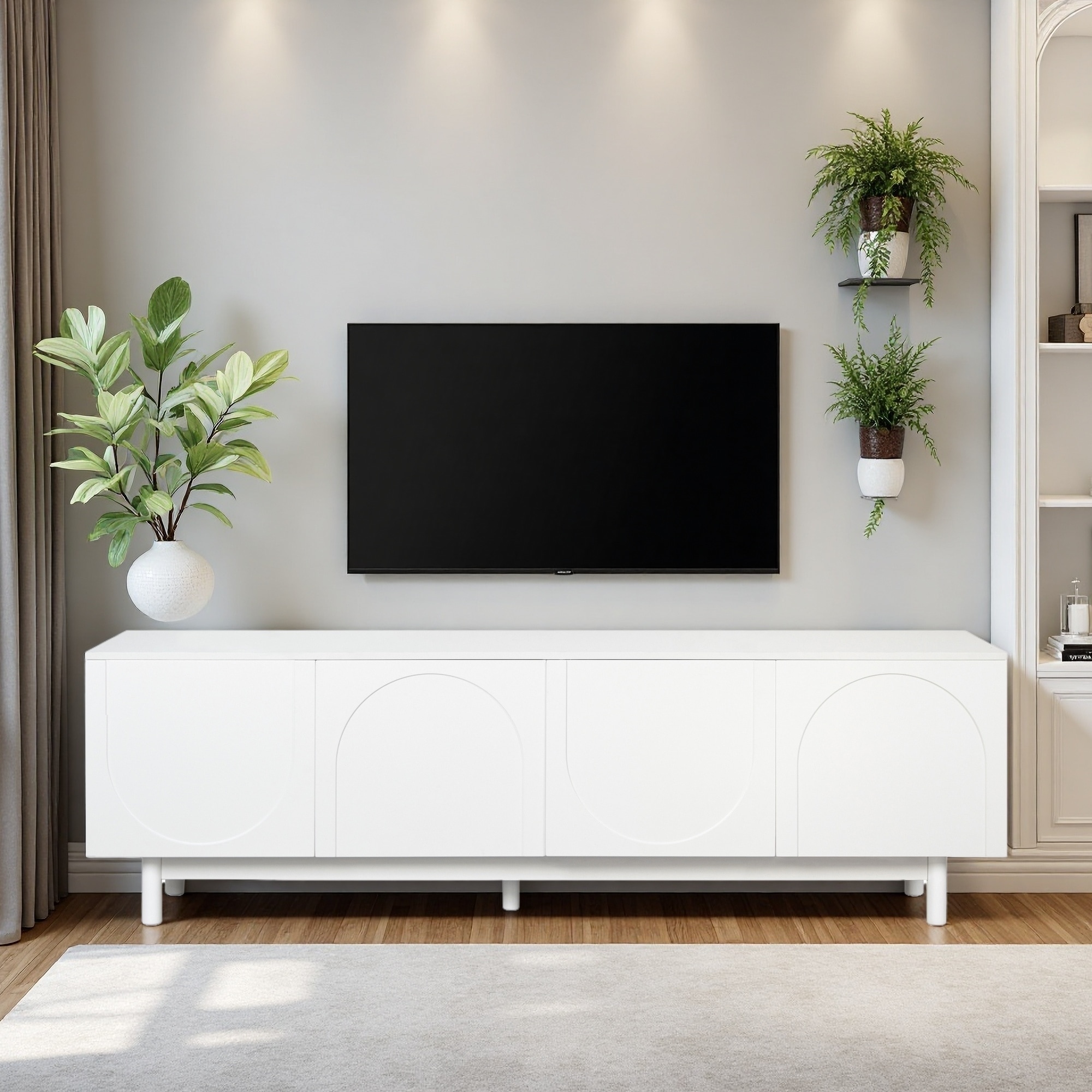 TV Stand with Arch Cabinets for TVs Up to 78", Practical Media Console with Adjustable Shelves for Living Room