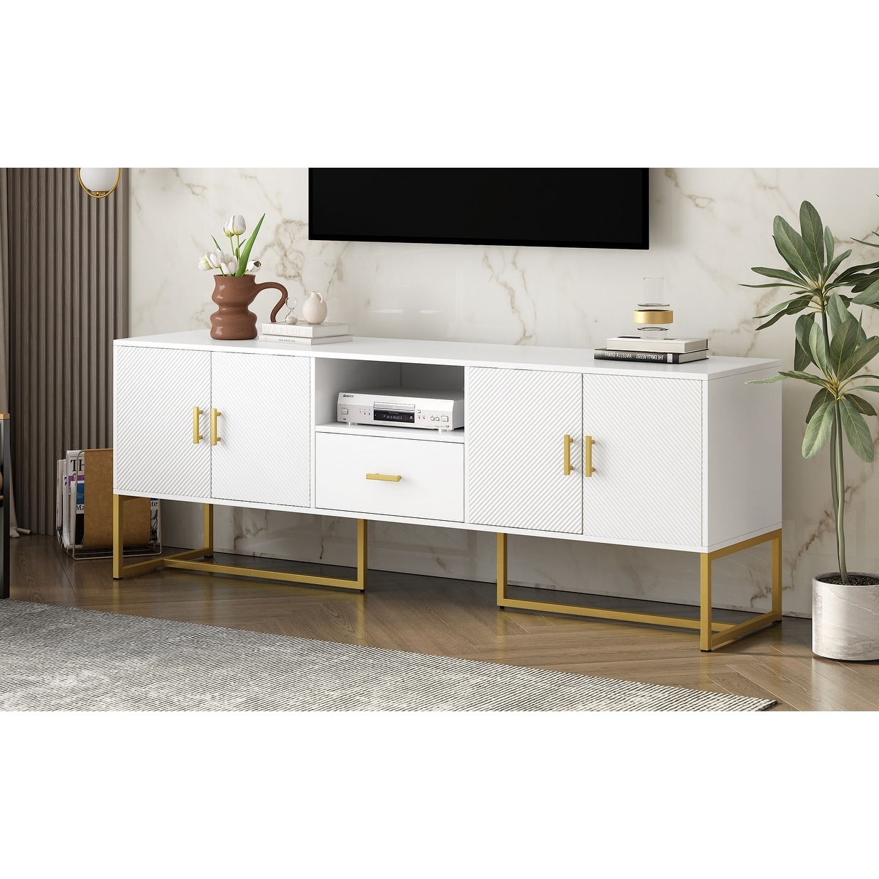 TV Stand Modern Mid Century Entertainment Center with Storage, Adjustable Shelves