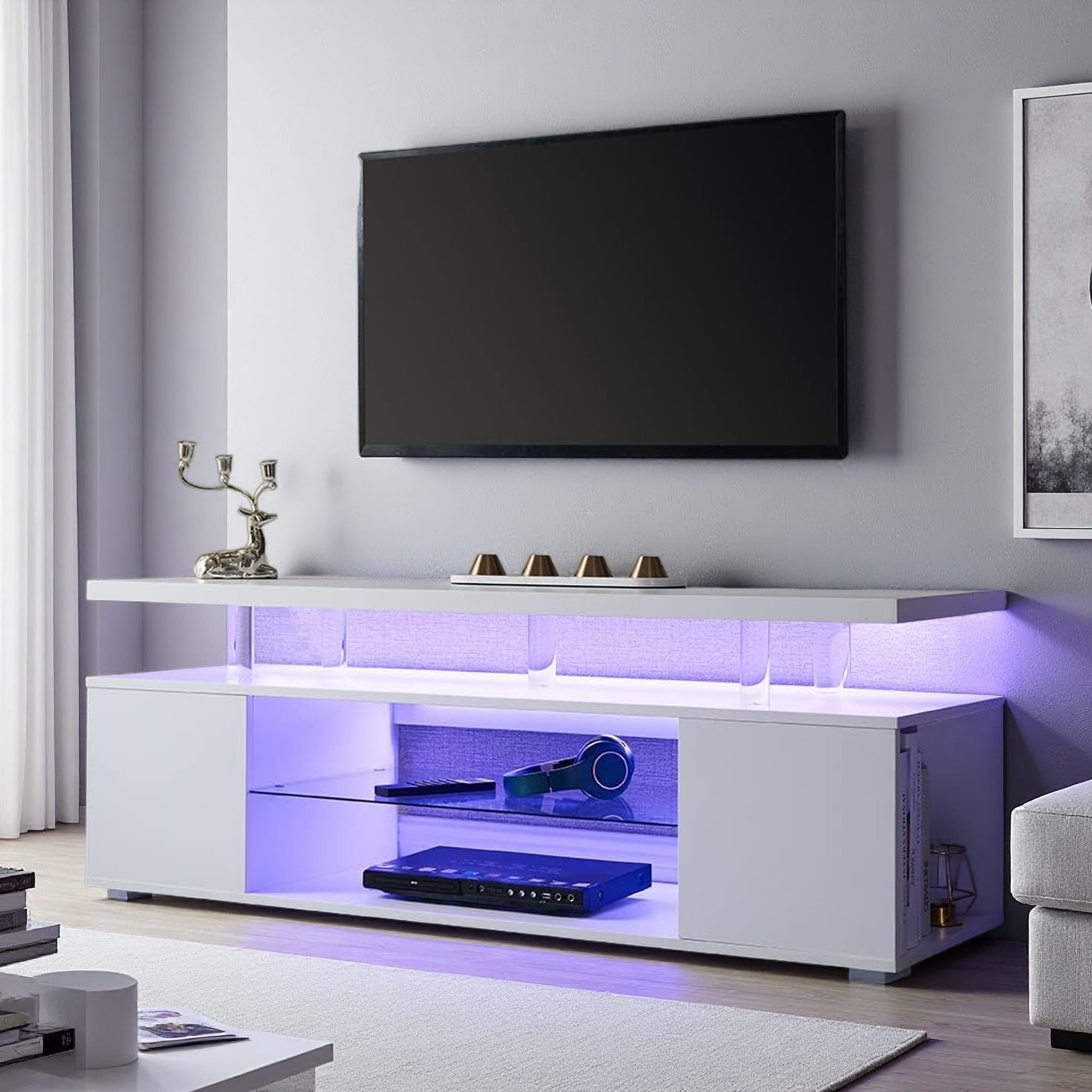 65.35in Wall Mounted Floating TV Stand with 20 Color LEDs