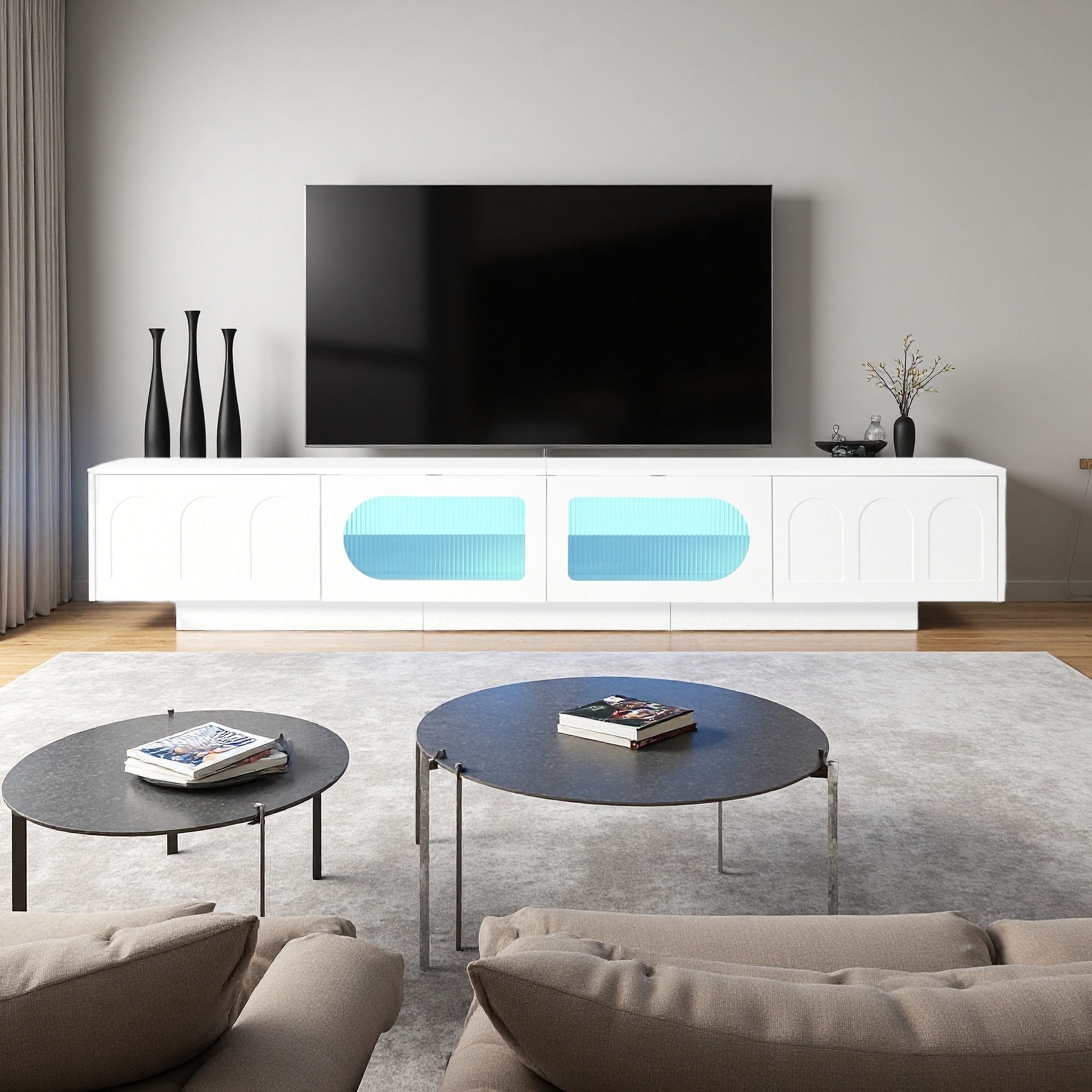 86.6" MDF TV Stand with Fluted Glass Doors, LED & Spacious Cabinets