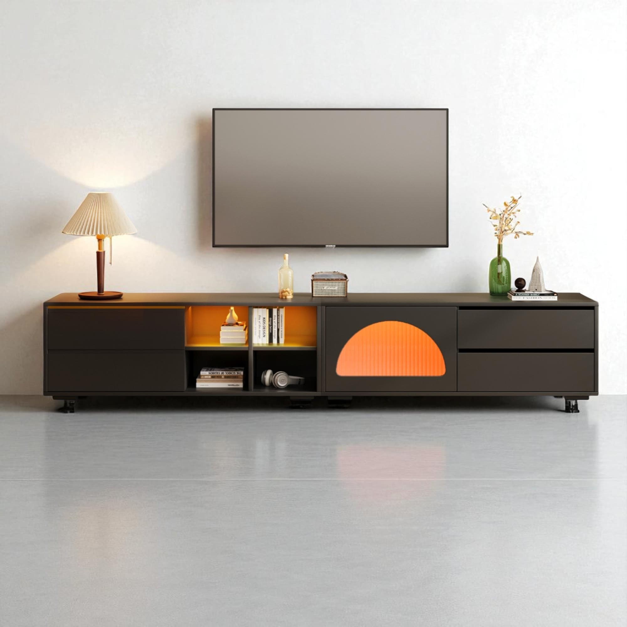 TV Stand for TVs Up to 80", Entertainment Center with Cabinets and Drawers, Smooth Media Console