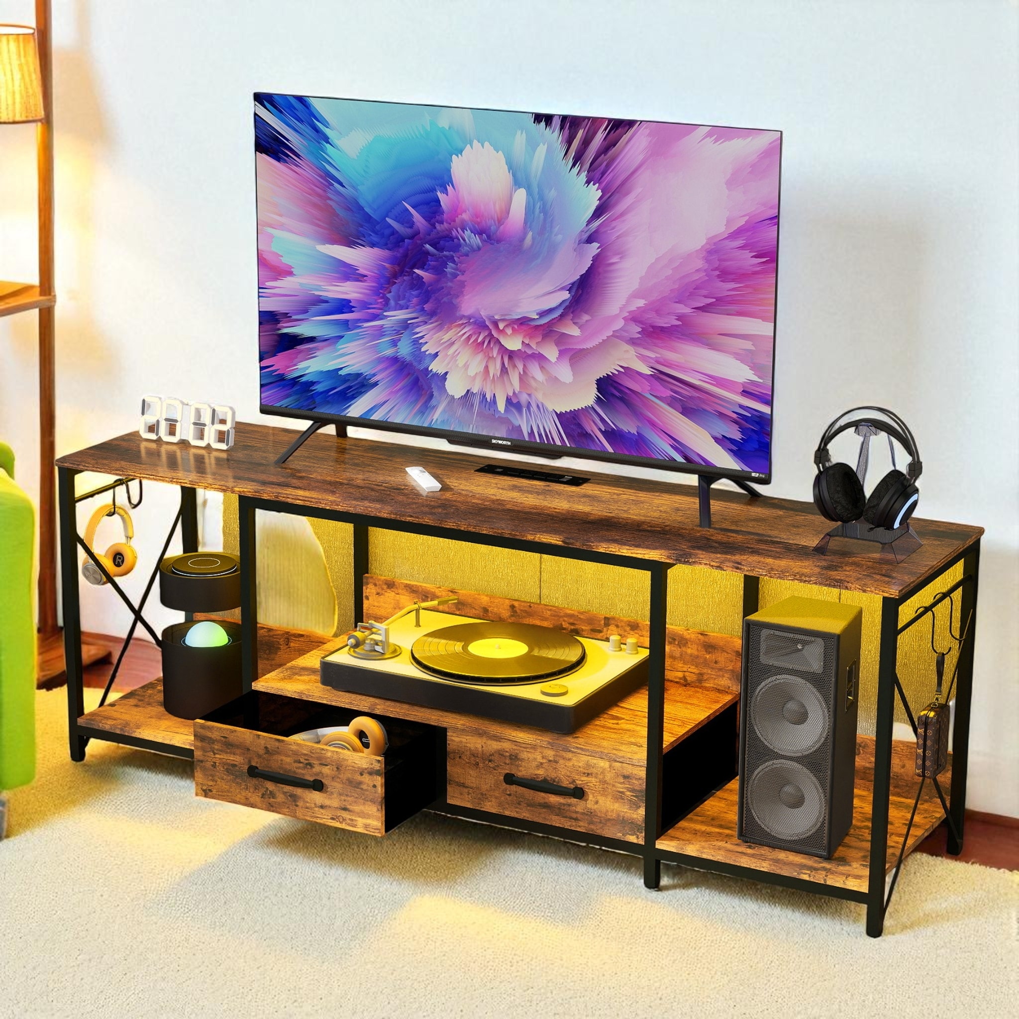Rustic TV Stand for TVs up to 65", Entertainment Center Media Cabinets with Storage Cabinet and Open Shelves