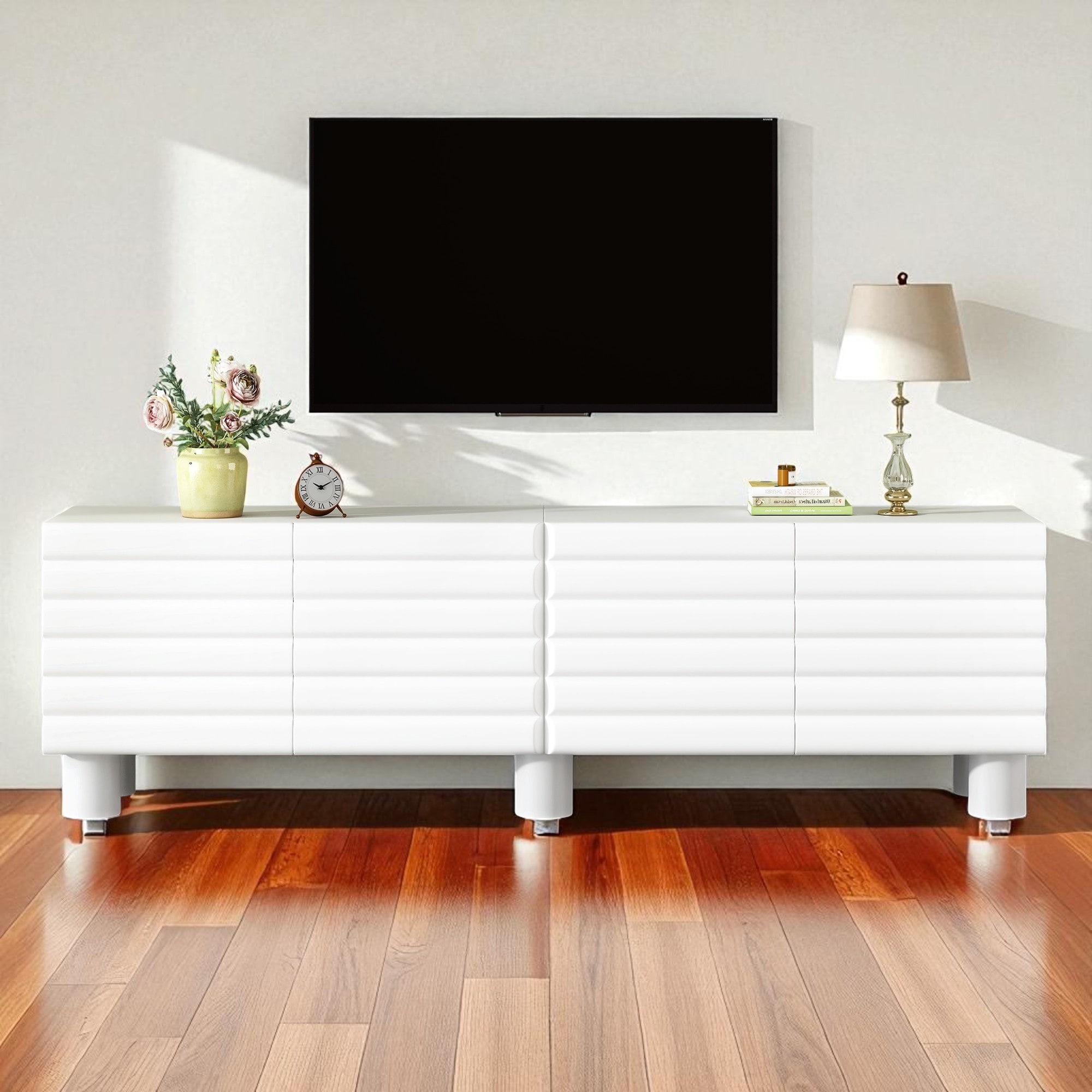 70.8 Inch Modern Cream TV Stand with Wavy Doors, 4 Cabinets, Adjustable Shelves, Cable Holes, Media Console for TVs Up to 75"